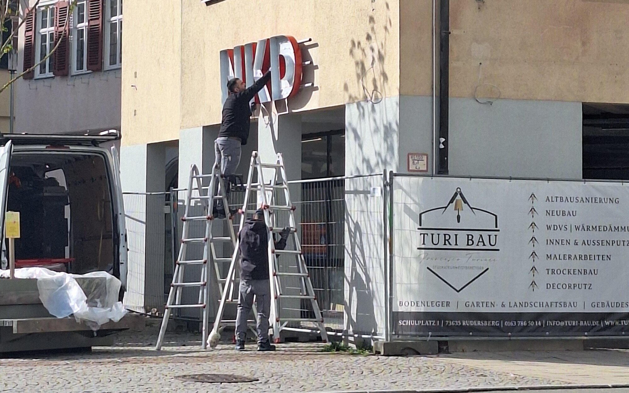 Einem Kollegen vom Zeitungsverlag Waiblingen war auf dem Nachhauseweg an eben diesem Freitag aufgefallen, dass bei der NKD-Filiale am Rudersberger Marktplatz etwas im Gange war. Zwei Männer waren dabei, den NKD-Schriftzug über der Eingangstür