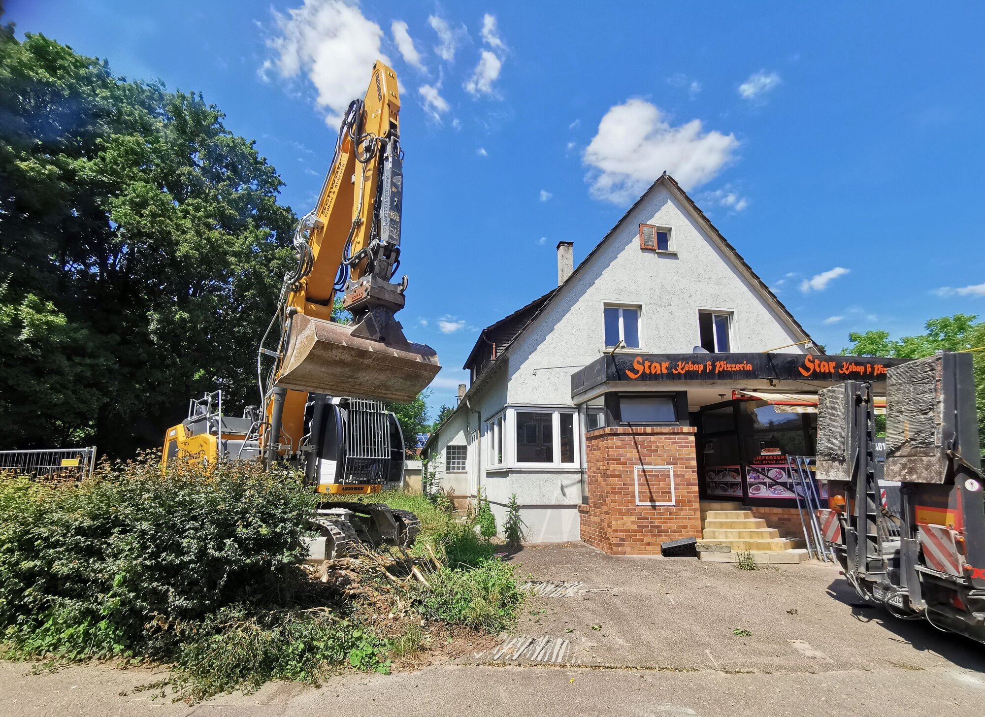 Rudersberg-Schlechtbach. Dieser Abbruch war lange angekündigt, nun wird er Realität: Das Haus am Rathausplatz 4 im Rudersberger Teilort Schlechtbach blickt seinen letzten Tagen entgegen. An diesem Dienstag (17.06.) sind die Bagger ausgerückt zu dem geschichtsträchtigen Gebäude in der Ortsdurchfahrt.
