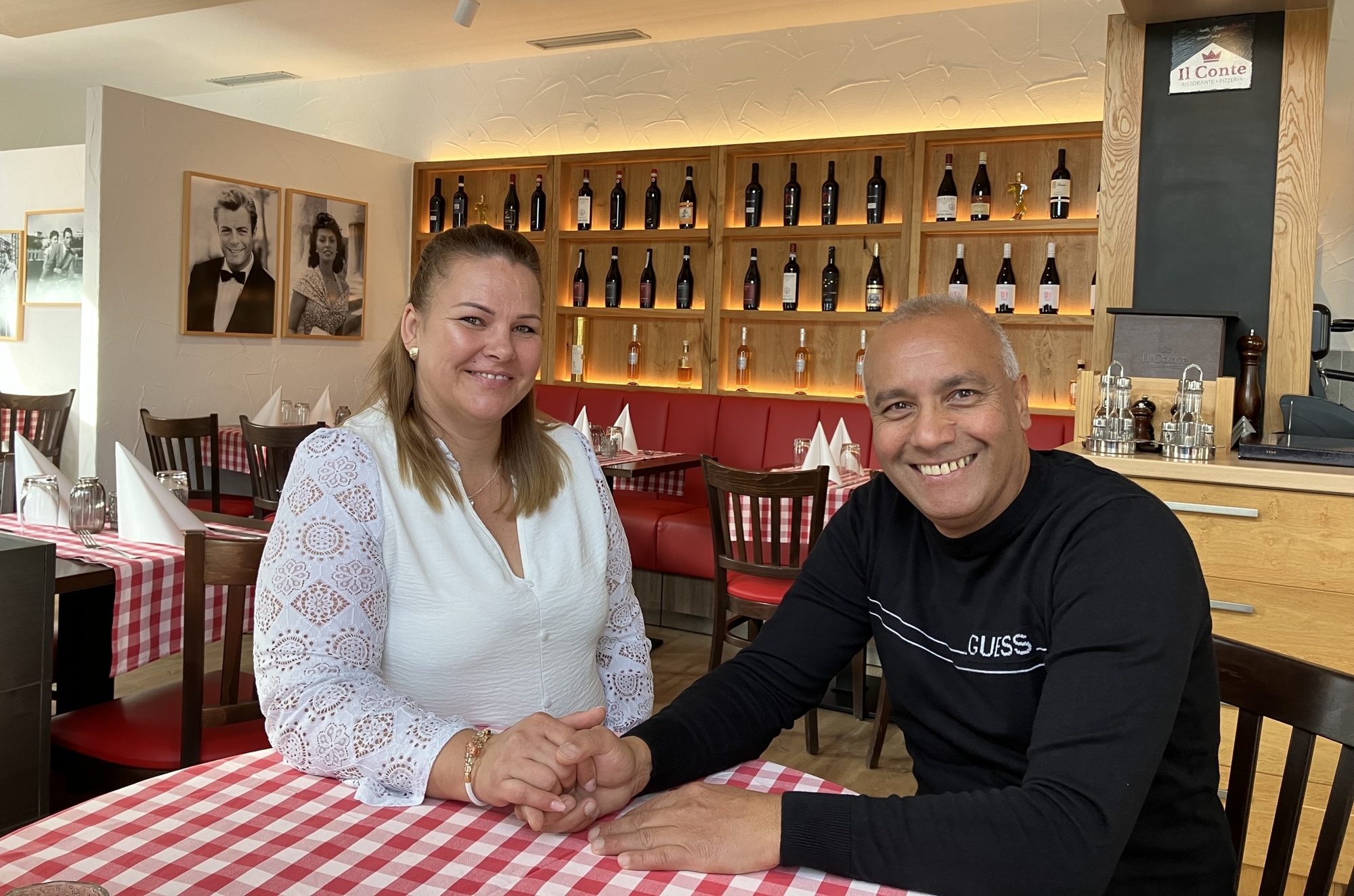 Innig verbunden: Pizzeria-Inhaberin Mariann Miklosi und ihr Mann Levente Horvath. © Katharina Lehle