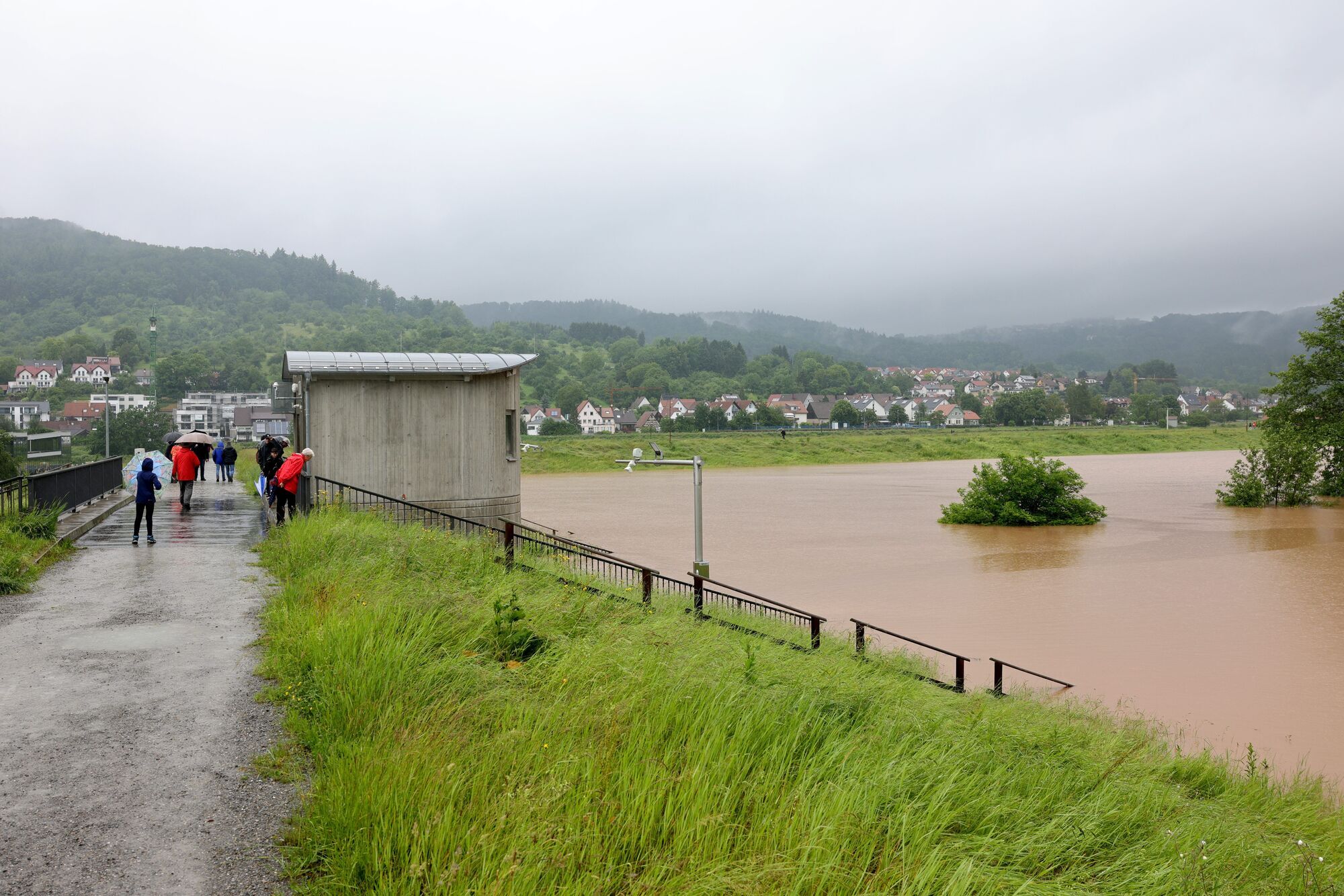 Am Samstagmittag richtete Rudersbergs Bürgermeister Raimon Ahrens eine eindringliche Warnung an die Bevölkerung: „Bitte bringen Sie sich in Sicherheit und gehen Sie nicht in tiefer gelegene Räume!“ Der Grund dafür: Das Rückhaltebecken am Glasofenbach, der in die Wieslauf fließt, hatte seine Kapazitätsgrenze erreicht.
