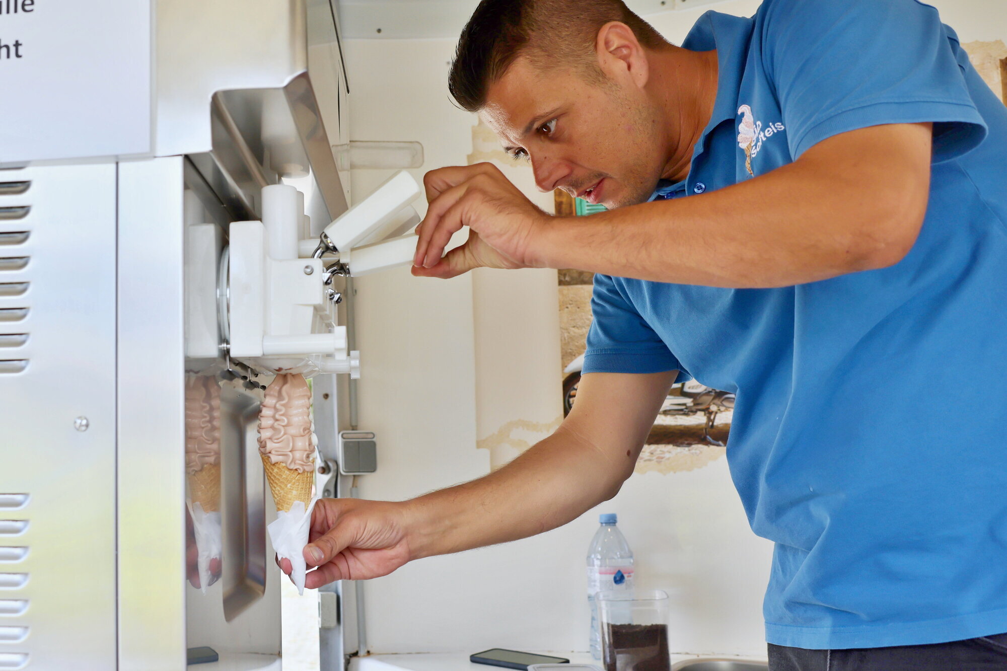 Rudersberg-Schlechtbach. Dieser Soft-Eis-Kiosk ist ein mobiler Anhänger in überdimensionierter Dosenform. Etwa drei Meter hoch und einen Meter breit. Bisschen im Las-Vegas-Look. Samstags und sonntags den Sommer über steht er auf dem Parkplatz vor dem Bürgerhaus in Rudersberg -Schlechtbach. Ein Hingucker. Und eine Attraktion für inzwischen viele Stammkunden, wie sich Alex Giovarruscio, der Betreiber, freut.