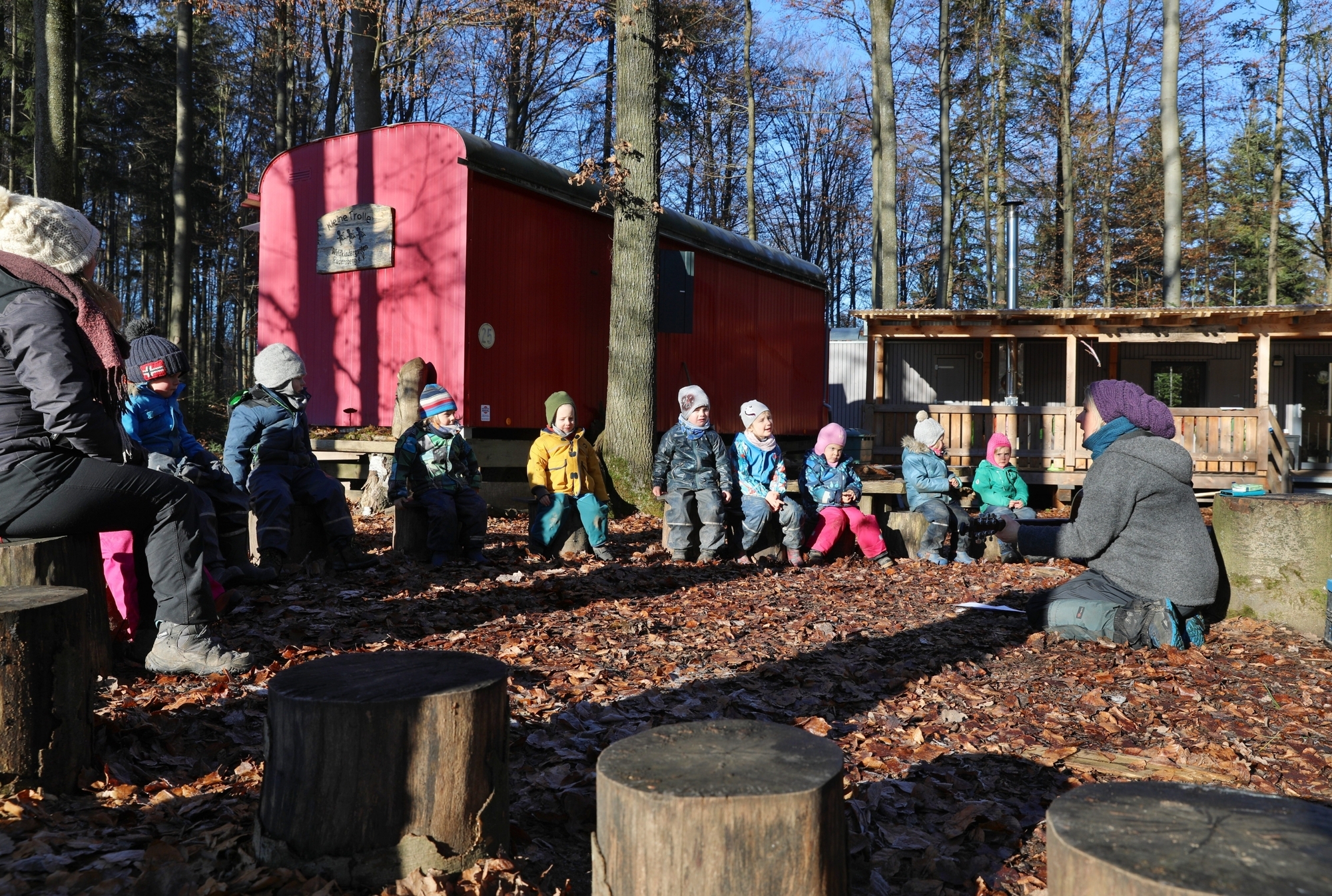 Florian Zeller ist begeistert. Er findet es faszinierend, wie die Kinder rund um den Bauwagen der "Kleinen Trolle" mit dem spielen, was sie im Wald vorfinden. An diesem kalten Wintertag etwa haben sie sich lange mit dem Tau auf einem Baumstamm beschäftigt. Und trotz der eisigen Temperaturen waren sie auch nur zum Vespern in ihrem Bauwagen – und ansonsten zwischen Bäumen und Sträuchern unterwegs.