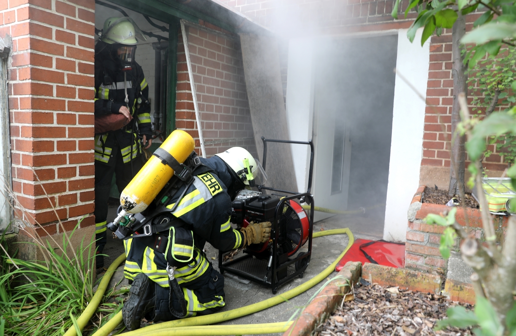 Der Rauchmelder dröhnt, aus dem Erdgeschoss quillt dichter Qualm. Bald danach auch aus dem Treppenhaus. Verzweifelte Hilferufe von Eingeschlossenen dringen aus dem ersten und zweiten Stock des Gebäudes in der Schorndorfer Straße 99, dem Übungsobjekt eines Einsatzes der Freiwilligen Feuerwehr der Abteilung Stadt.