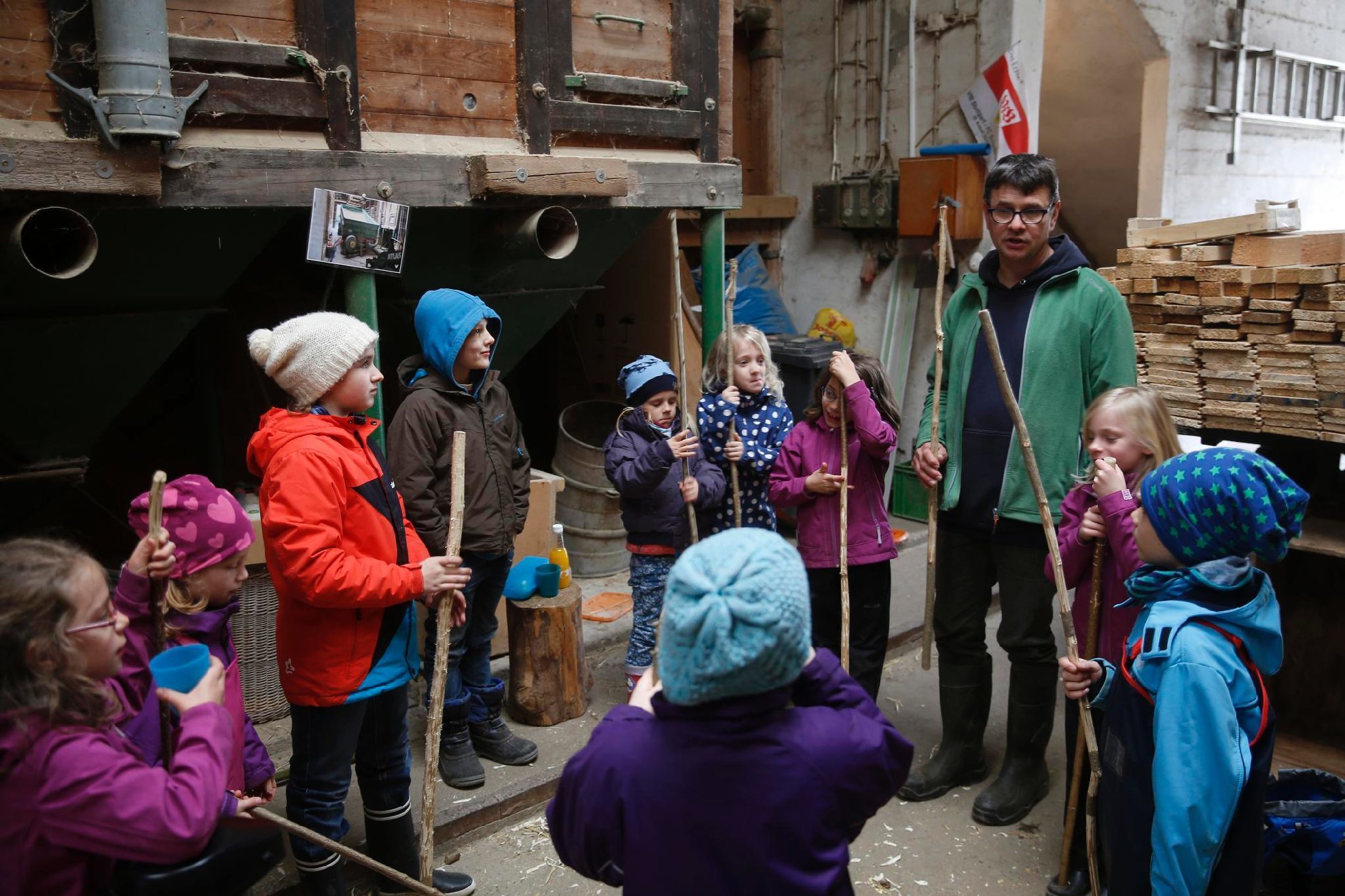 Wer Clemens Luber kennenlernt, atmet erst mal durch. Der Winterbacher strahlt ernstzunehmende Ruhe aus, die abfärbt. Selbst eine hibbelige Gruppe von Sechs- bis Neunjährigen bringt ihn nicht aus dem Takt. Seit etlichen Jahren gibt’s bei ihm auf dem Hof mehr als nur Milch und Käse. Hier gibt’s Bildung zum Anfassen. Vormittags sind Schul- oder Kindergartengruppen zu Gast, nachmittags bietet er unter anderem die sogenannten Jahreskurse an. Einzelne Kinder melden sich hierfür verbindlich an und kommen zwischen Februar und November einmal im Monat auf den Hof. Und da dürfen sie nicht nur gucken. Nein. Hier wird mitangepackt.