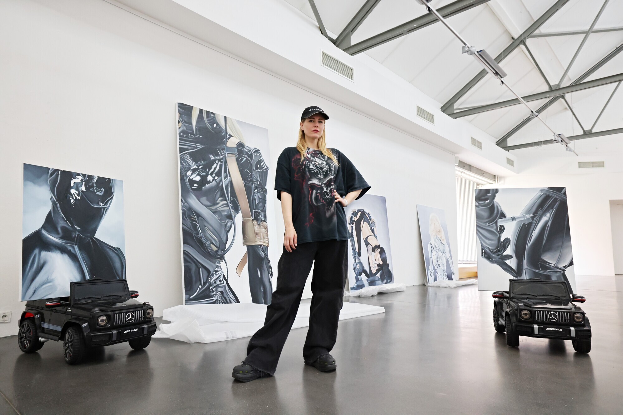 Schorndorf. Facebook? Die Gesichts-Bücher, die von der jungen Künstlerin Charlie Stein in ihrer Ausstellung in Schorndorf aufgeschlagen werden, sind unleserlich. Zu sehen sind auf ihren Gemälden Körper und Köpfe, die weibliche Formen haben. Die Gesichter selbst sind unter einer schwarz glänzenden Latex-Haut verschwunden. Anonyme Lust-Sklavinnen fetisch-affiner Männerfantasien? Oder maskierte Rächerinnen ihrer übergriffigen Geschlechtserfahrungen, die begehrliche Blicke an