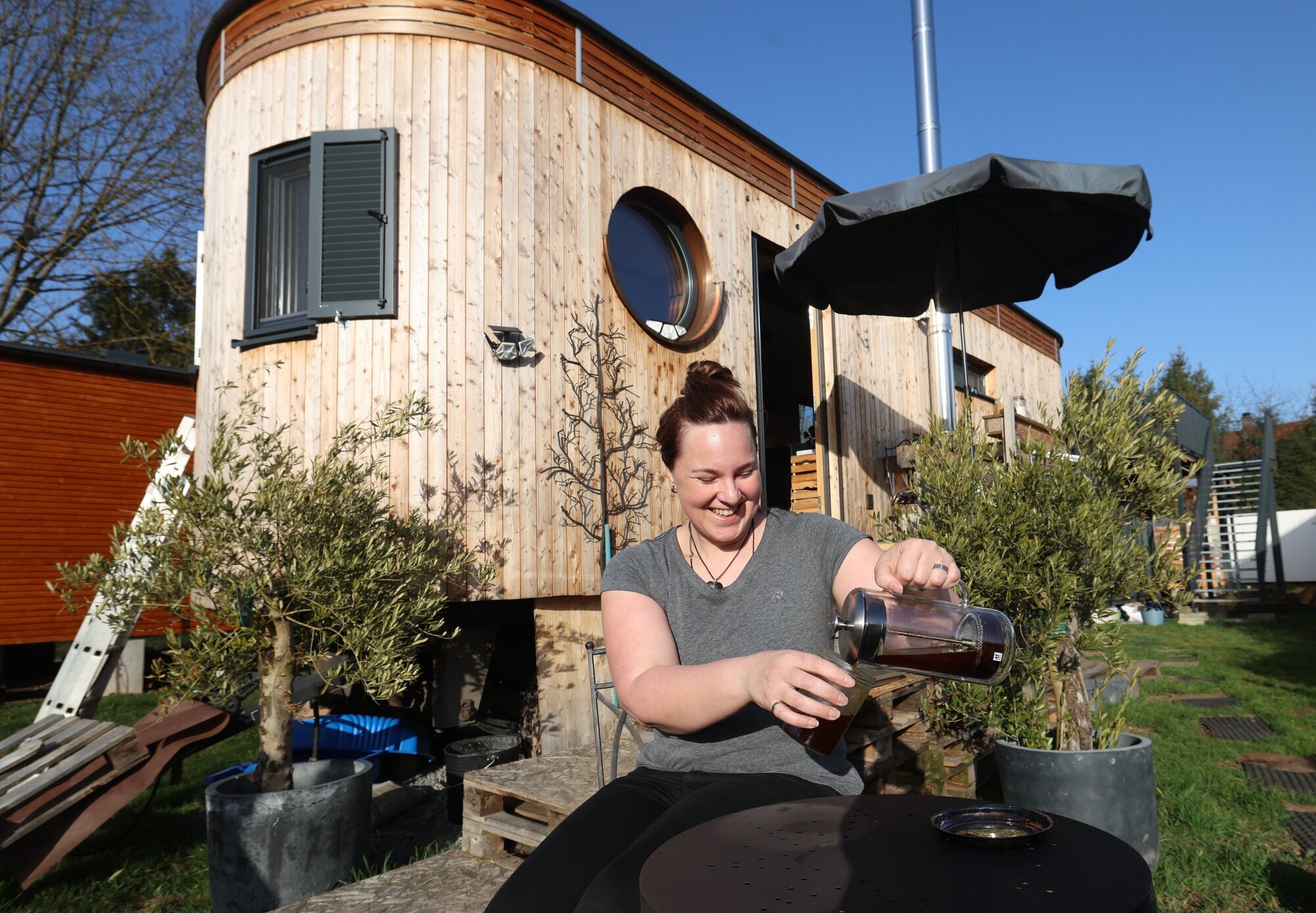 Schorndorf. Sie liebt die schönen Dinge, und die brauchen nicht viel Platz, findet Janina Franziskus. Vor gut einem Jahr ist die 38-Jährige in ihr Tiny-House in Haubersbronn eingezogen, das mit seinen Maßen und der ovalen Form eher an einen Zirkuswagen als an ein Haus erinnert - und im Innern auch ein bisschen an eine Wundertüte: Unfassbar, was Janina Franziskus auf 20 Quadratmetern an großen und kleinen Dingen untergebracht hat. Dabei ist ihr Häuschen kein bisschen