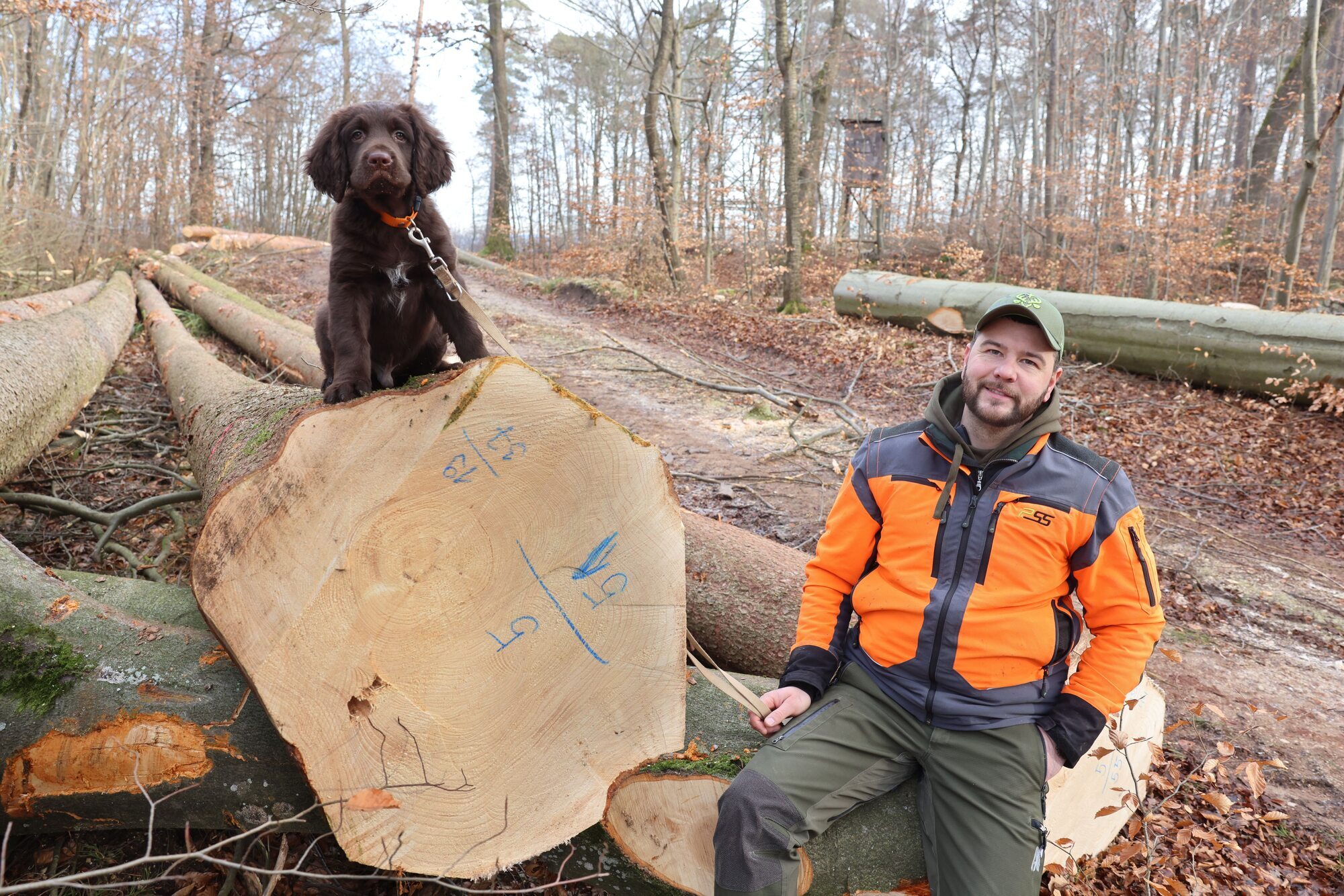 „Halt! Baumfällungen! Lebensgefahr!“ Ein weiß-orangefarbenes Banner versperrt den Zugang zu einem Waldweg nahe der Deponie im Aichenbach in Schorndorf. Dahinter verbirgt sich eine alte Ton- oder Steingrube, am Waldrand stapeln sich einige große Baumstämme. Oberhalb der Grube werden weitere gefällte Bäume, darunter Buchen, Tannen und Fichten, mit einem Rückezug aus dem Wald gezogen. Forstrevierleiter Julian Schmitt erklärt, was es mit den größeren Holzfällarbeiten auf sich hat.