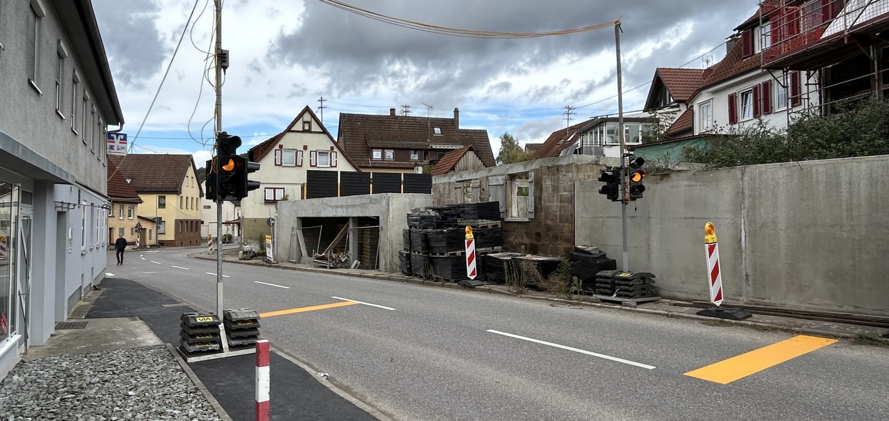 Bauzäune und unpassierbare Gehwege, ein gesperrter Zebrastreifen und eine Ersatzampel, die an einem Baustellen-Klo endet: Wild und verworren war an diesem Dienstag die Situation für Autofahrer und Fußgänger in Schornbach. Am schlimmsten war sie allerdings für die Schulkinder der Sommerrainschule: Mitten im Berufsverkehr, berichtete eine Mutter den Schorndorfer Nachrichten, müssten die Kinder in der dunklen Jahreszeit auf der Hauptstraße spazieren gehen. Denn mit der Baustelle, die jetzt