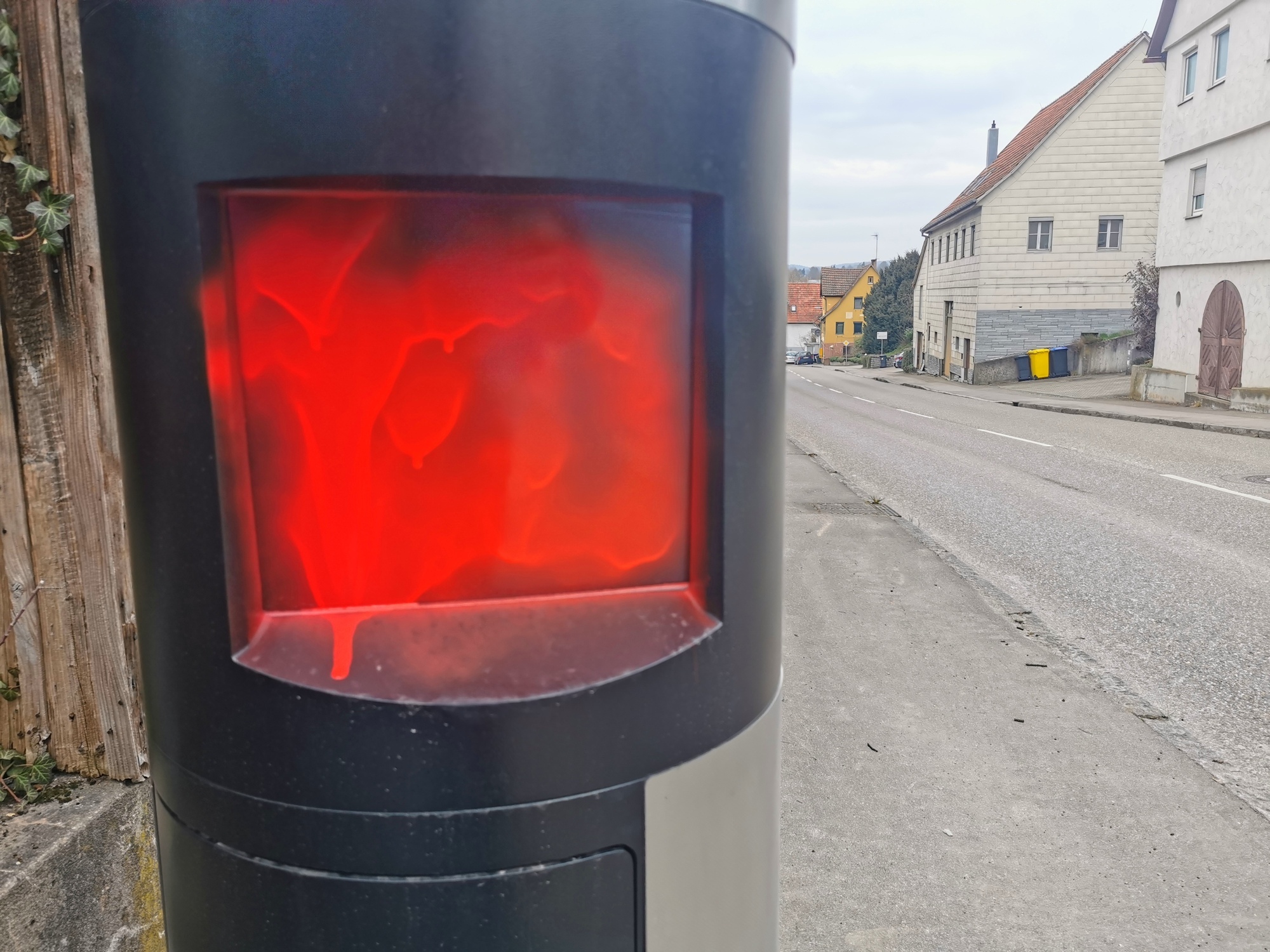 Schorndorf-Miedelsbach. Da hat wohl jemand rot gesehen: Die Blitzersäule am Ortseingang von Schorndorf- Miedelsbach in der Haubersbronner Straße ist beidseitig mit roter Farbe besprüht worden.
