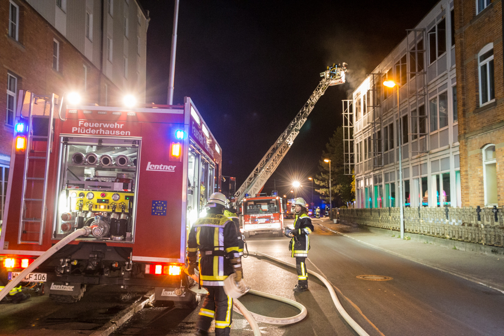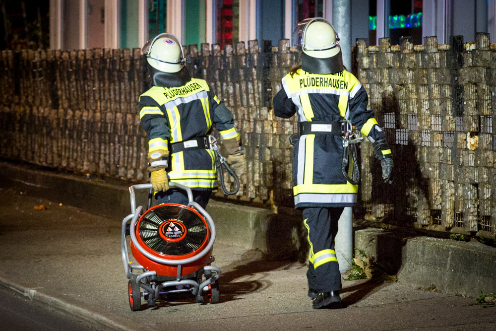 Die Feuerwehren Plüderhausen und Schorndorf setzten ein Wenderohr der Drehleiter und zwei Rohre im Innenangriff ein. Sie waren mit sieben Fahrzeugen und 55 Mann im Einsatz, das DRK mit zwei Fahrzuegen. Die Brandursache war vermutlich ein technischer Defekt im Bereich der Elektrik. Hinweise auf eine andere Brandursache liegen nicht vor.