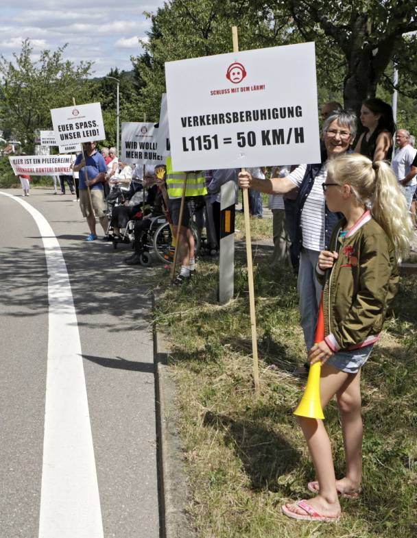 Schorndorf. Fast 80 Menschen standen am Samstagnachmittag zu beiden Seiten der Schlichtener Straße. Mit Transparenten und Tröten begrüßten sie die vorbeifahrenden Motorräder. Sie wollen mit der Aktion auf den für sie unerträglichen Lärm aufmerksam machen, den vor allem einige Möchtegernrennfahrer auf der kurvenreichen Strecke verursachen. Ein Ärgernis, mit dem die Schorndorfer nicht allein sind.