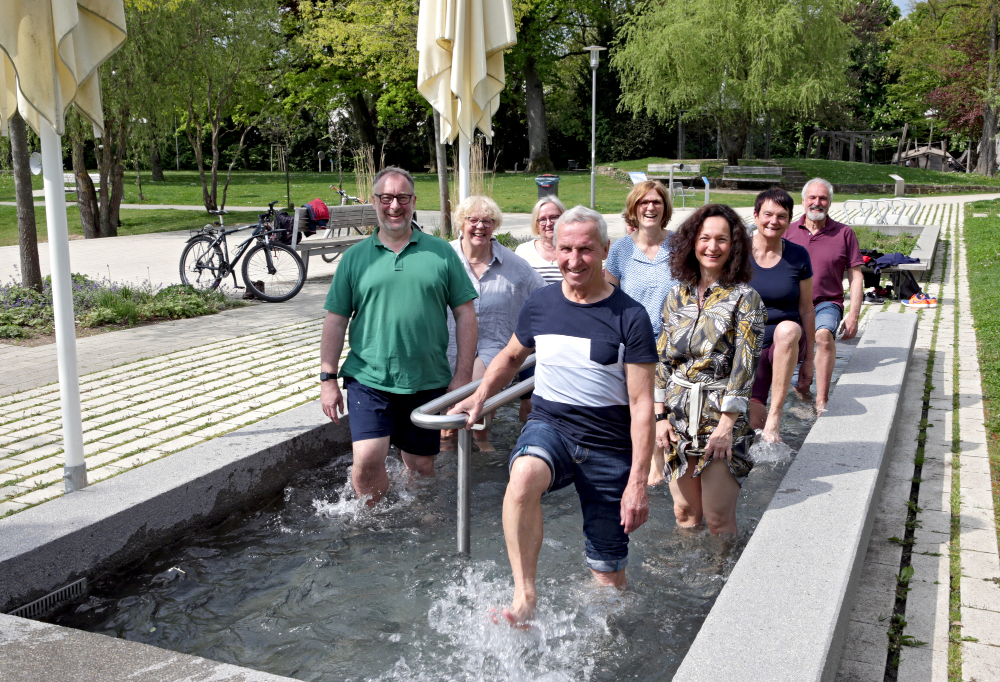 Endlich! Es ist wieder so weit. Die Freude steht dem Vorstand und den Mitgliedern des Kneipp-Vereins Schorndorf ins Gesicht geschrieben: Die Kneipp-Anlagen im Stadtpark und Aichenbach-Gebiet sind gesäubert und befüllt und warten nur darauf, „beschritten“ zu werden.