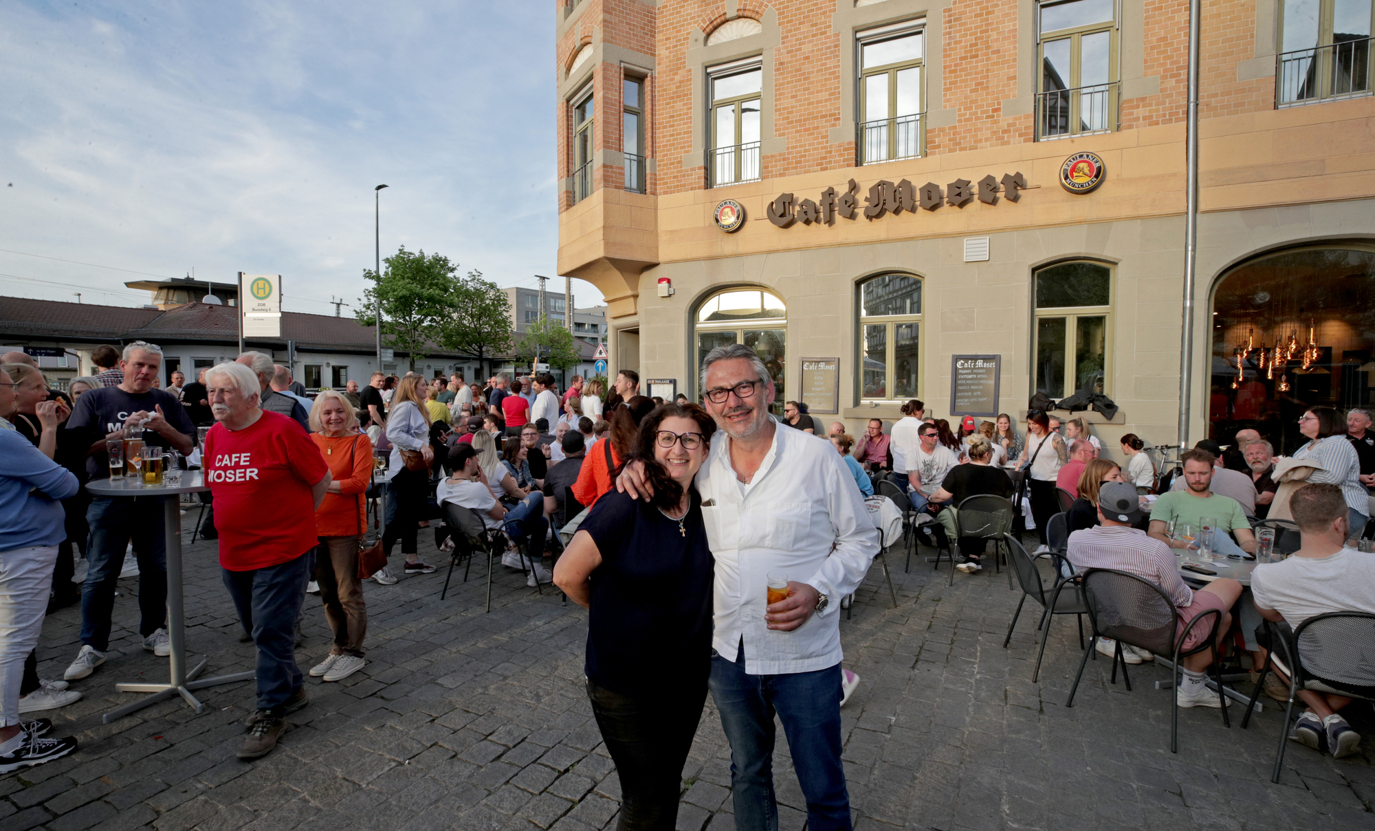 Und alle, alle kamen! Es müssen an diesem letzten Tag des alten Café Moser gut an die tausend Gäste und Freunde gewesen sein, die sich zum Abschied der Wirtsleute Chris Sidiropoulou und Spiros Kapouranis noch einmal in dieser legendären Kult-Kneipe gegenüber dem Bahnhof ein Stelldichein gaben. Zu einem letzten Becher, oder auch zwei mehr. Es ward ein feuchtes Adieu. Im gefüllten Glas und im herzwehmütig, schimmernd getränten Auge.