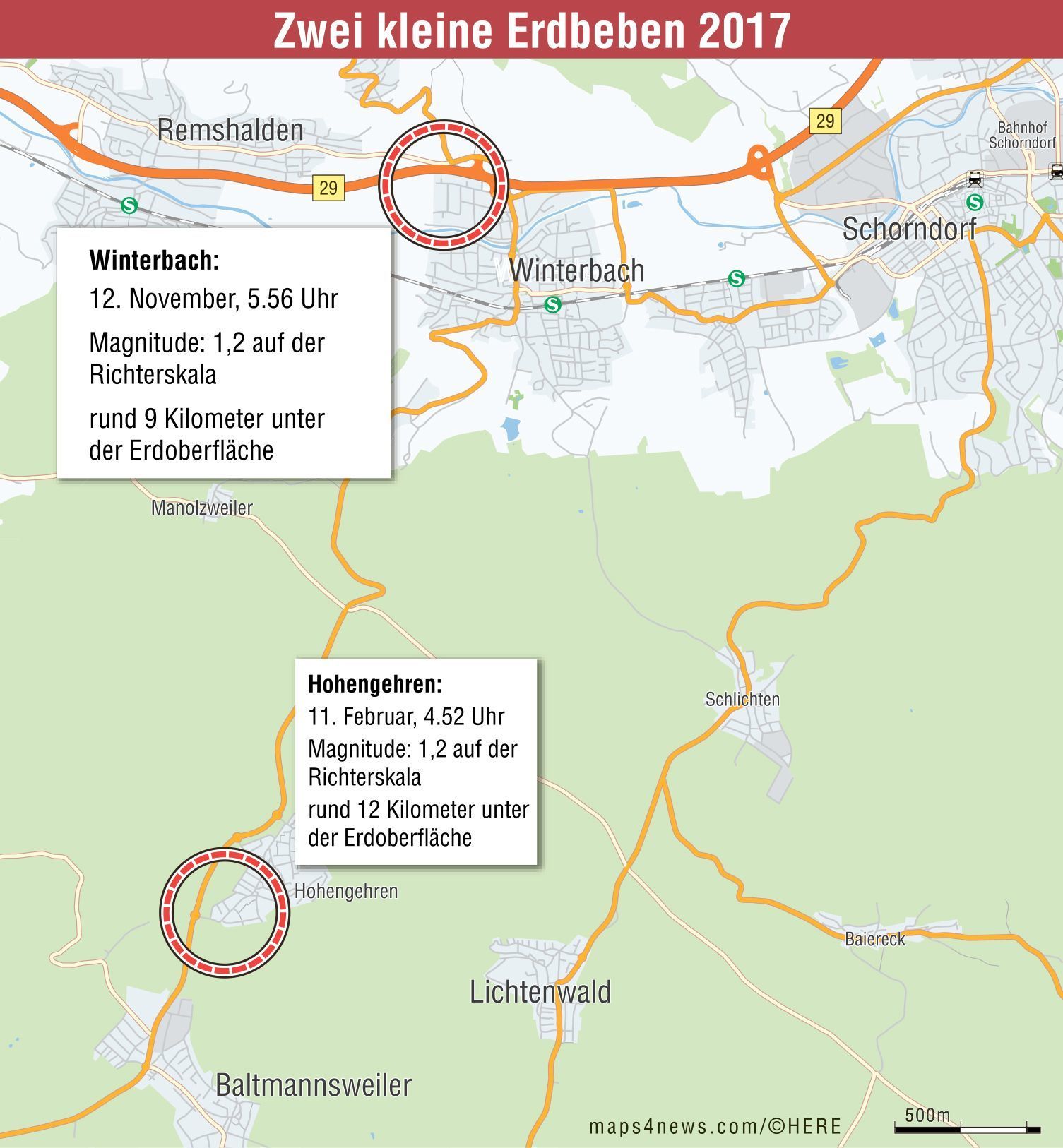 Nach der Einschätzung des Landes-Erdbebendienstes, der in Freiburg sitzt und bei dem alle Messungen von Erdbewegungen zusammenlaufen, ist das Beben bei Winterbach für die Menschen in der Umgebung nicht spürbar gewesen. „Erdbeben in dieser geringen Stärke messen wir jeden Tag irgendwo in Baden-Württemberg“, sagt Wolfgang Brüstle, der Leiter des Landes-Erdbebendienstes. Im Schorndorfer Raum seien Beben zwar sehr selten, könnten aber schon vorkommen. Brüstle spricht von einer Größenordnung im Bereich von 20 kleineren Beben in den vergangenen 20 Jahren. Die letzte große Erschütterung der Erde, die wirklich alle in der Umgebung gespürt hätten, sei im Oktober 1997 ein Beben mit Epizentrum bei Lorch gewesen. Das hatte aber eine Stärke von 3,7 auf der Richterskala, war also ungleich heftiger als die Winterbacher Erdstöße jetzt.