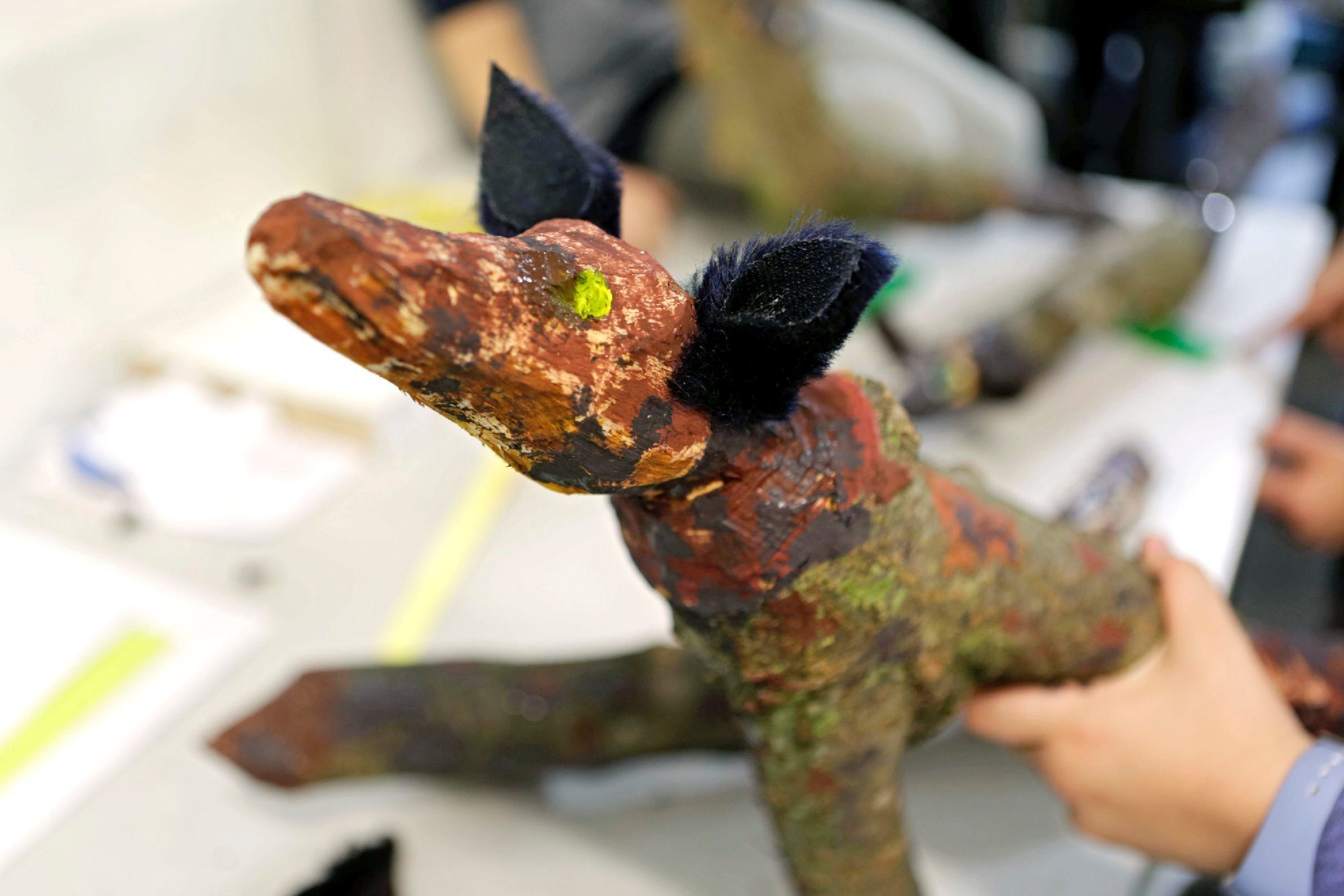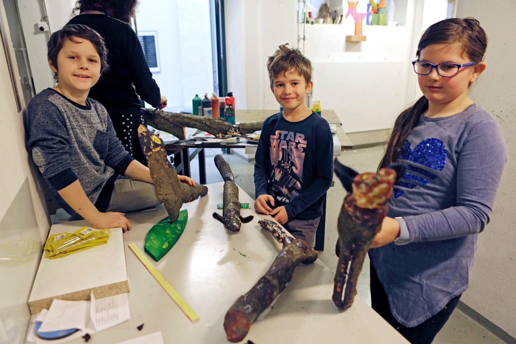 Max ist inzwischen mit seinem Fuchs fertig. Mit seiner langen schmalen Schnauze thront er nicht nur fast majestätisch. Er sieht, obgleich künstlerisch abstrahiert, auch erstaunlich lebensnah aus. Und das ist Ebba Kaynak dann auch besonders wichtig: „Dass die Kinder ein Leben lang wissen, wie ein Fuchs aussieht, dass er eine lange Schnauze, einen spitzen Schwanz hat – und dass er nicht böse ist.“
