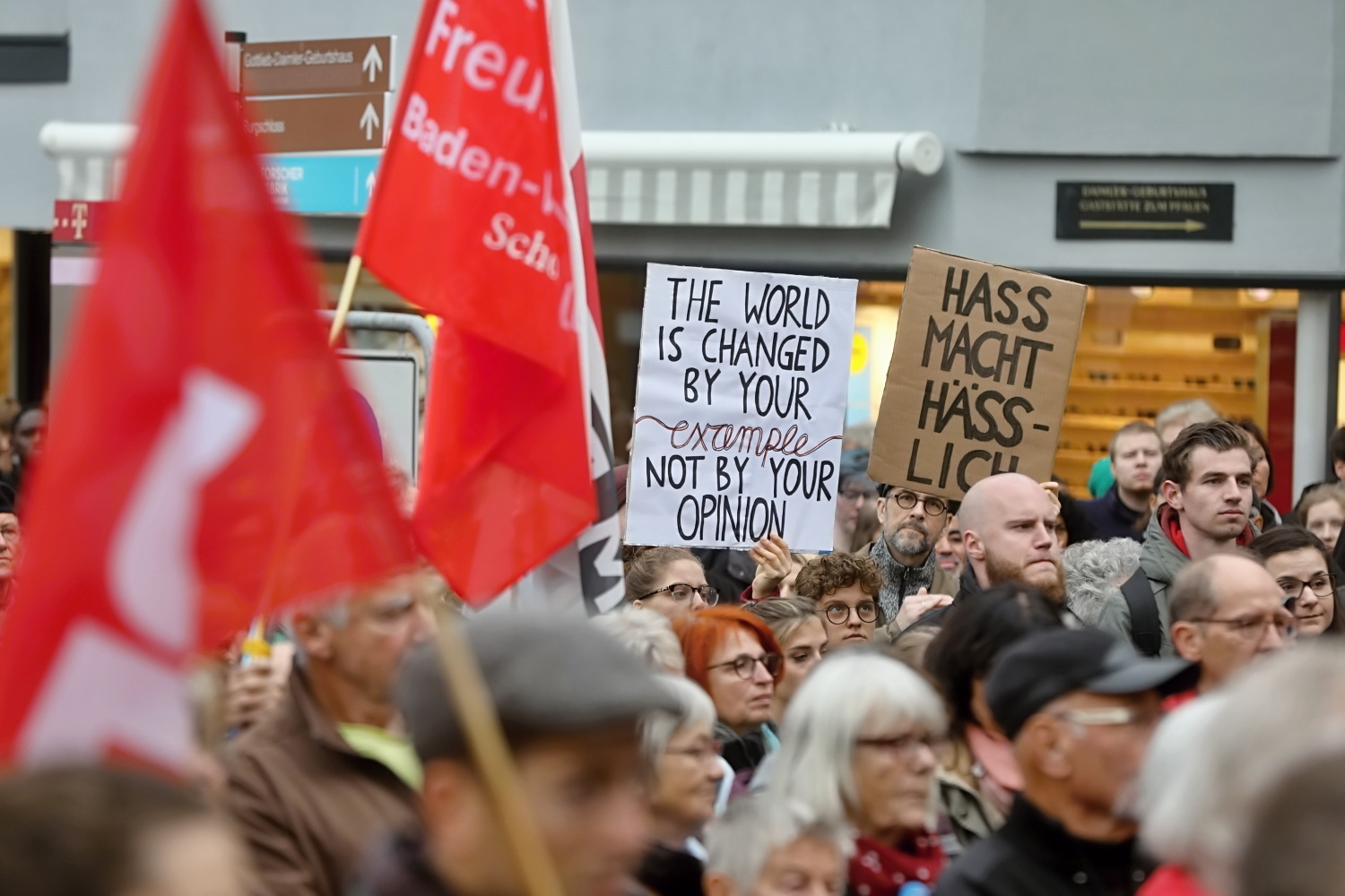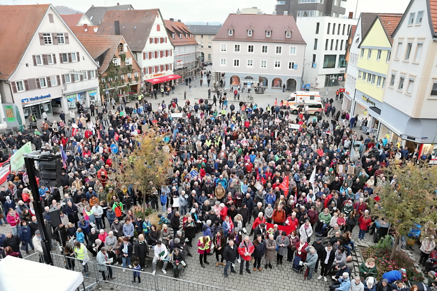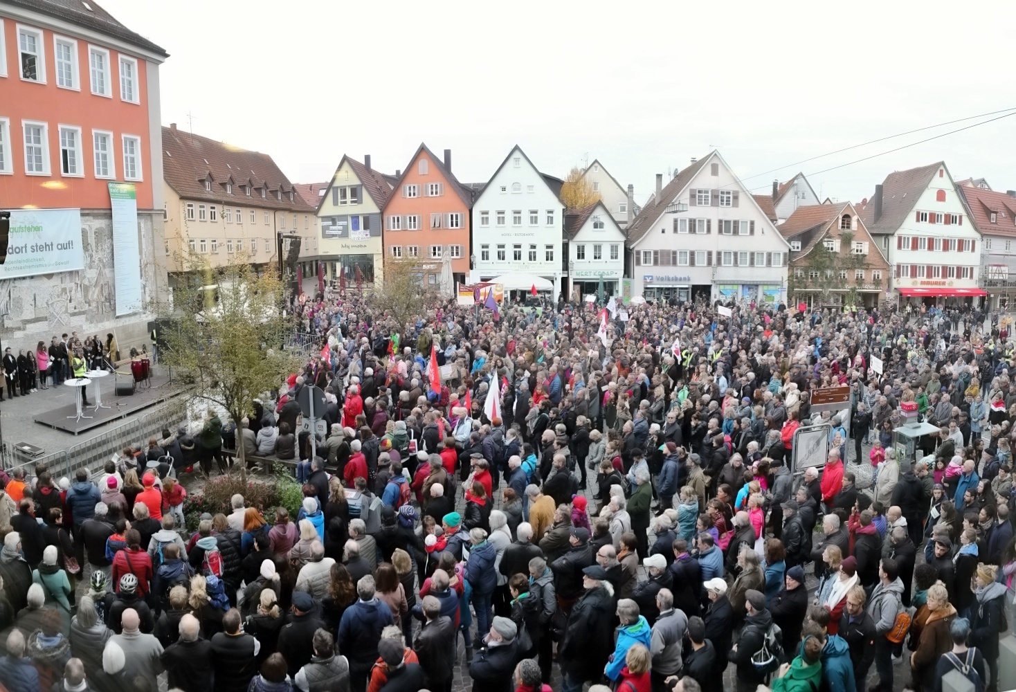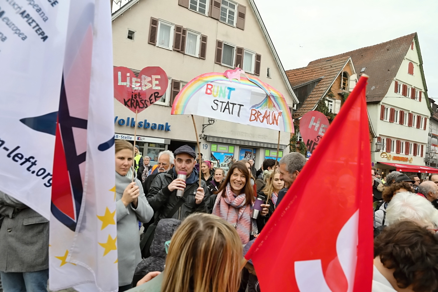 Und was für die Initiatoren und Veranstalter ebenfalls wichtig ist: Die Veranstaltung blieb bis zum Schluss friedlich, befürchtete Verkehrsbehinderungen blieben aus. Für Markus Jatzko, Leiter des Schorndorfer Polizeireviers, und Ersten Bürgermeister Edgar Hemmerich ist dies nicht nur das Ergebnis einer guten Vorbereitung, sondern auch ein Zeichen, dass es sich bei den Teilnehmern um die Vertreter eines breiten, demonkratischen Bündnisses handelt, die sich der Regeln in unserer Gesellschaft bewusst sind. Und selbst die Antifa-Gruppe, sich aus dem "Bündnis Zusammen gegen Rechts Rems-Murr" angekündigt hatte und mit 30 Personen am Rand der Demonstration dabei war, blieb friedlich. Die Polizei berichtet nur von einer Straftat: Ein Mann war mit einem Messer am Hosenbund zur Demo erschienen.