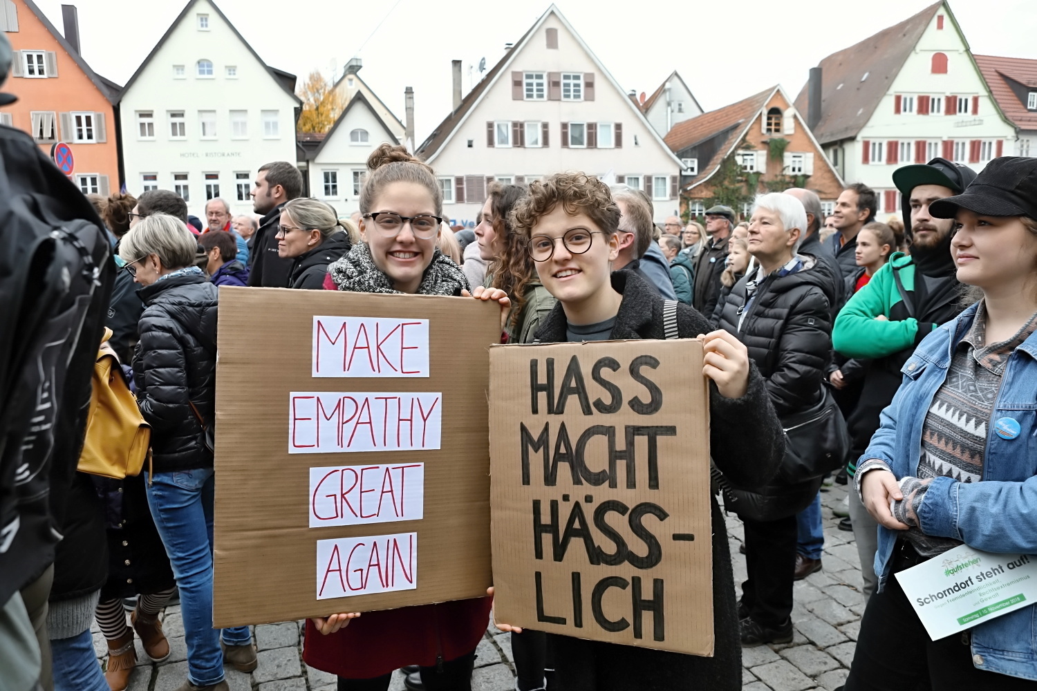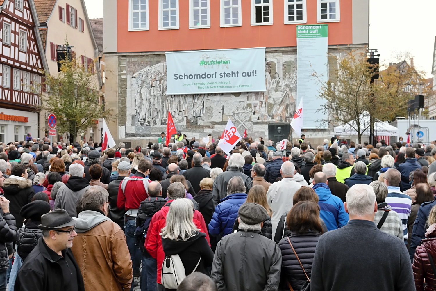 Auch wenn es noch keine Einigkeit über die Teilnehmerzahl gibt - OB Matthias Klopfer hat nach der Kundgebung auf dem Unteren Marktplatz von 2000 Teilnehmern gesprochen, Versammlungsleiter Jürgen Dobler schätzt, dass es nicht mehr als 1500 waren - die Zahl der Menschen, die am Samstagvormittag in Schorndorf aufgestanden sind gegen Fremdenfeindlichkeit, Rechtsextremismus und Gewalt ist beeindruckend: Initiiert von Ulrike und Marcus Seibold, war es eine klare Demonstration der sonst eher schweigenden Mehrheit.