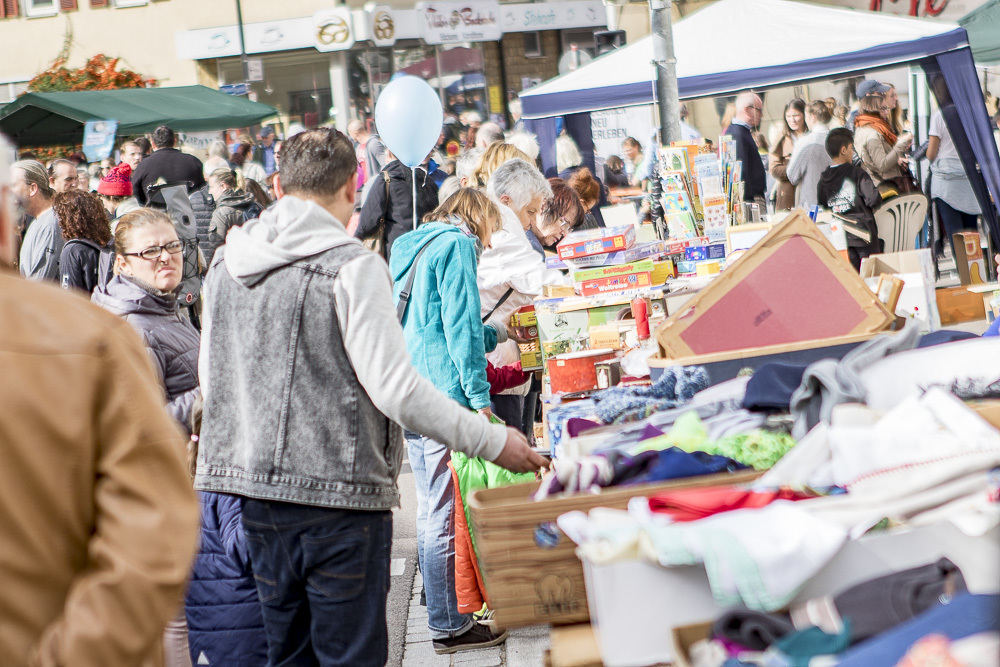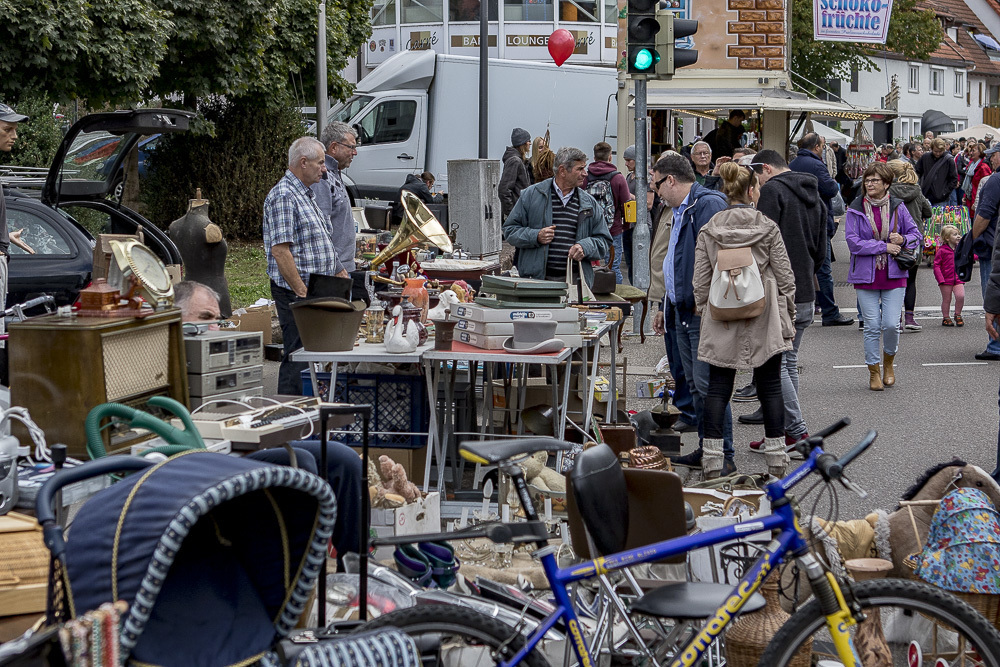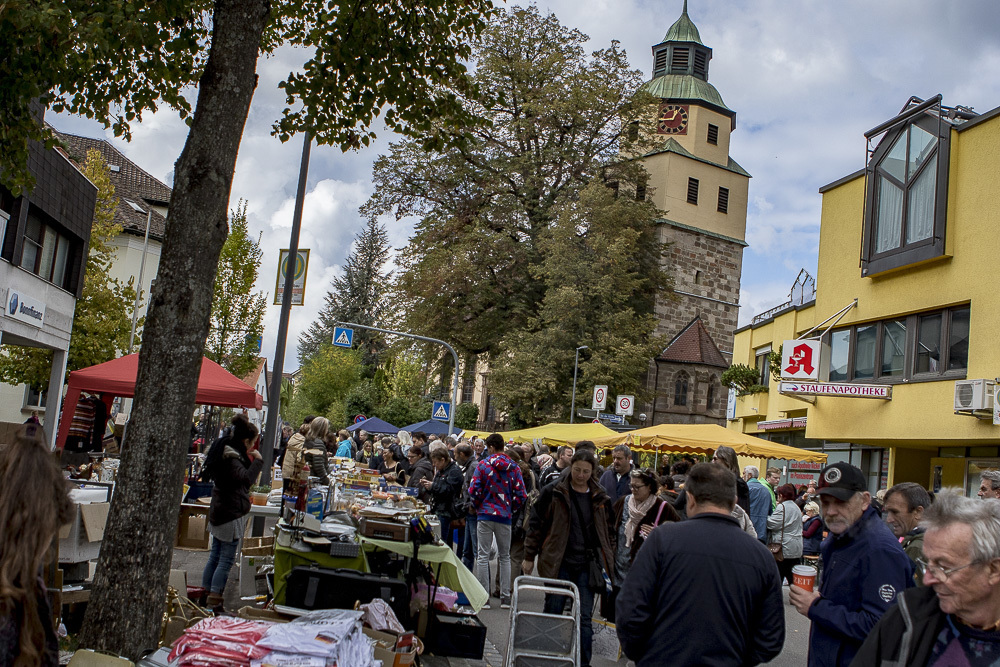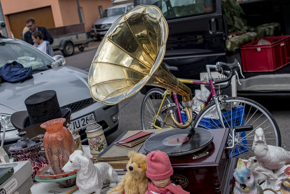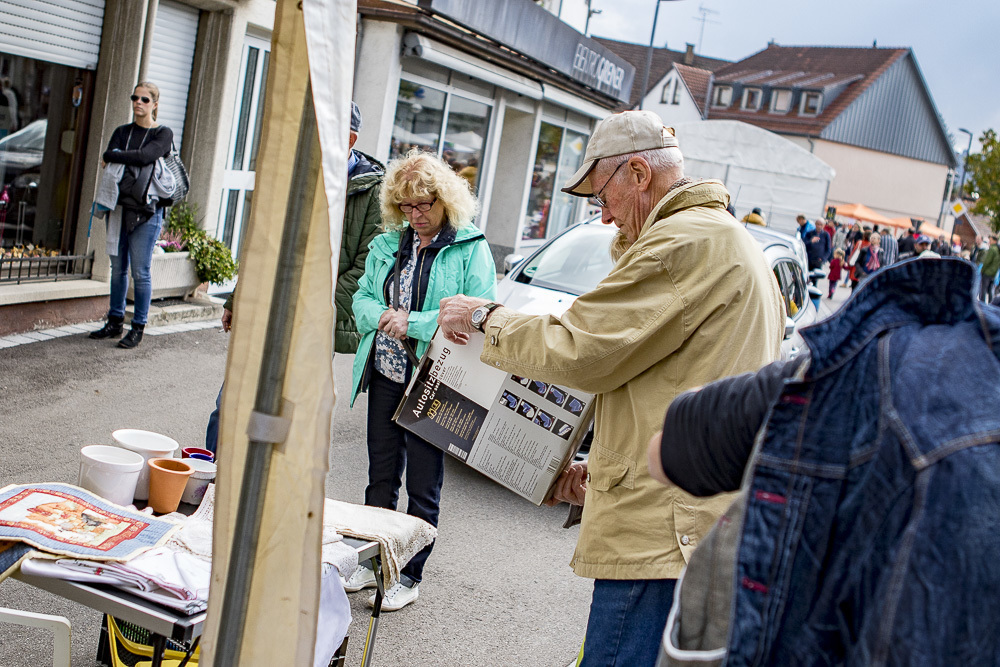 Und genau das macht doch den Reiz von Flohmärkten aus. Umso mehr, wenn, wie der Mit-Organisator vom HGV und Buchhändler Urs Donner sagt, darauf geachtet wurde, „dass die professionellen Flohmarktanbieter eher draußen vor bleiben und mehr die Einheimischen am Flohmarkt teilnehmen“. Das funktionierte dann so, kluge Idee, dass man sich nicht per Internet, sondern nur vor Ort mit einem Stand anmelden konnte. „Zwei Kilometer Flohmarktfläche sind so vermietet worden“, sagt Donner schmunzelnd. Und natürlich hatten viele Einzelhändler ihre Läden zum beschaulichen Einkaufen geöffnet.