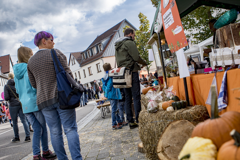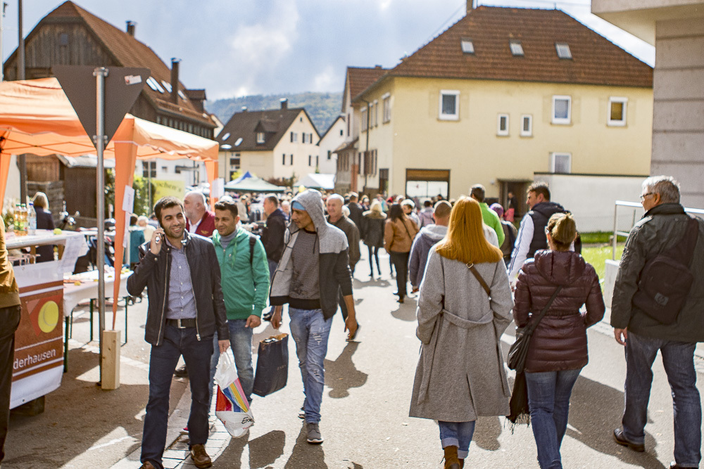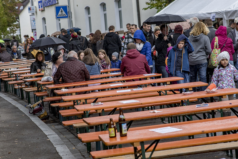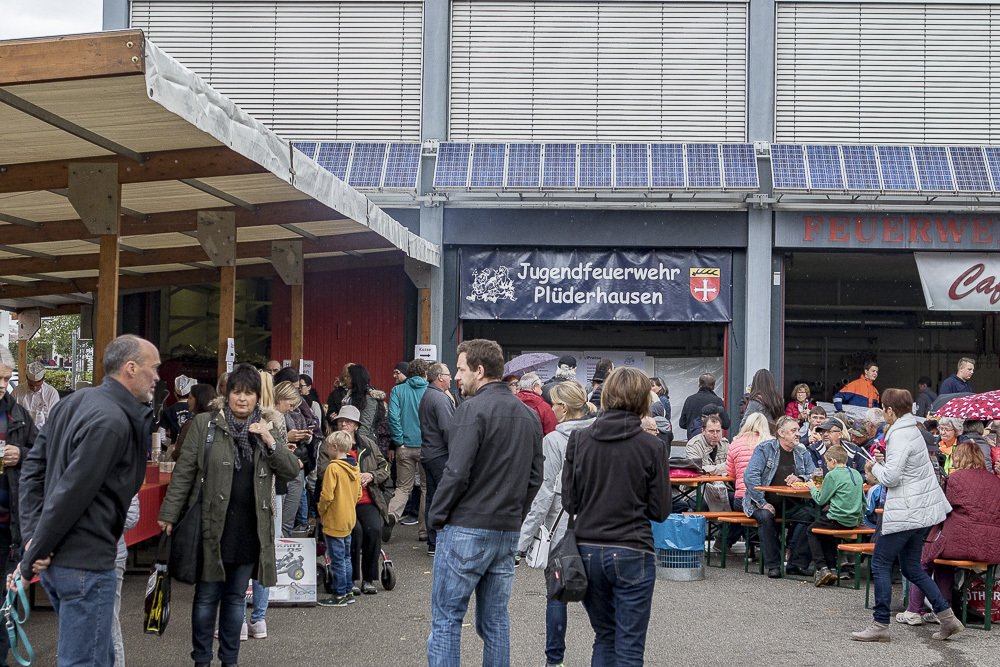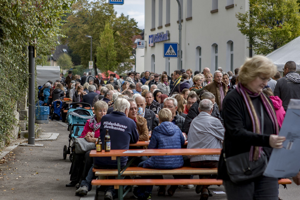 Schlangen gab’s zu Mittag bei der Sängervereinigung. Was da auf den Tellern lag, sah gar zu verlockend aus. Überhaupt war an allen Ecken und Enden Musik zu hören. Die jungen Plüderhäuser Musikanten als Straßenmusiker, der Musikverein Urbach als Gast beim Musikverein Hohberg und Gospel vom Christlichen Zentrum Life. Rappelvoll war es traditionell im Hof der Freiwilligen Feuerwehr, die ihre Einsatzwagen für alle Fälle natürlich woanders geparkt hatten.