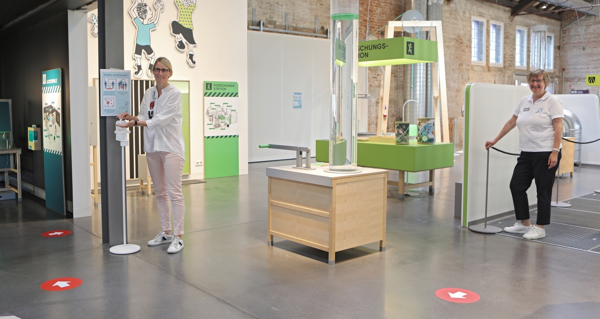 Damit sich die Besucherinnen und Besucher nicht zu sehr in die Quere kommen, sind sie dazu angehalten, nur in der Familie die Stationen zu begutachten. Gruppenansammlungen müssten vermieden werden. Das Team hat außerdem einen Rundgang angelegt. Rote Pfeile auf dem Boden geben den Weg vor. Kinder alleine durch das Science-Center laufen zu lassen sei nicht vorgesehen. Doch diese Regel habe bereits vor der Krise gegolten.