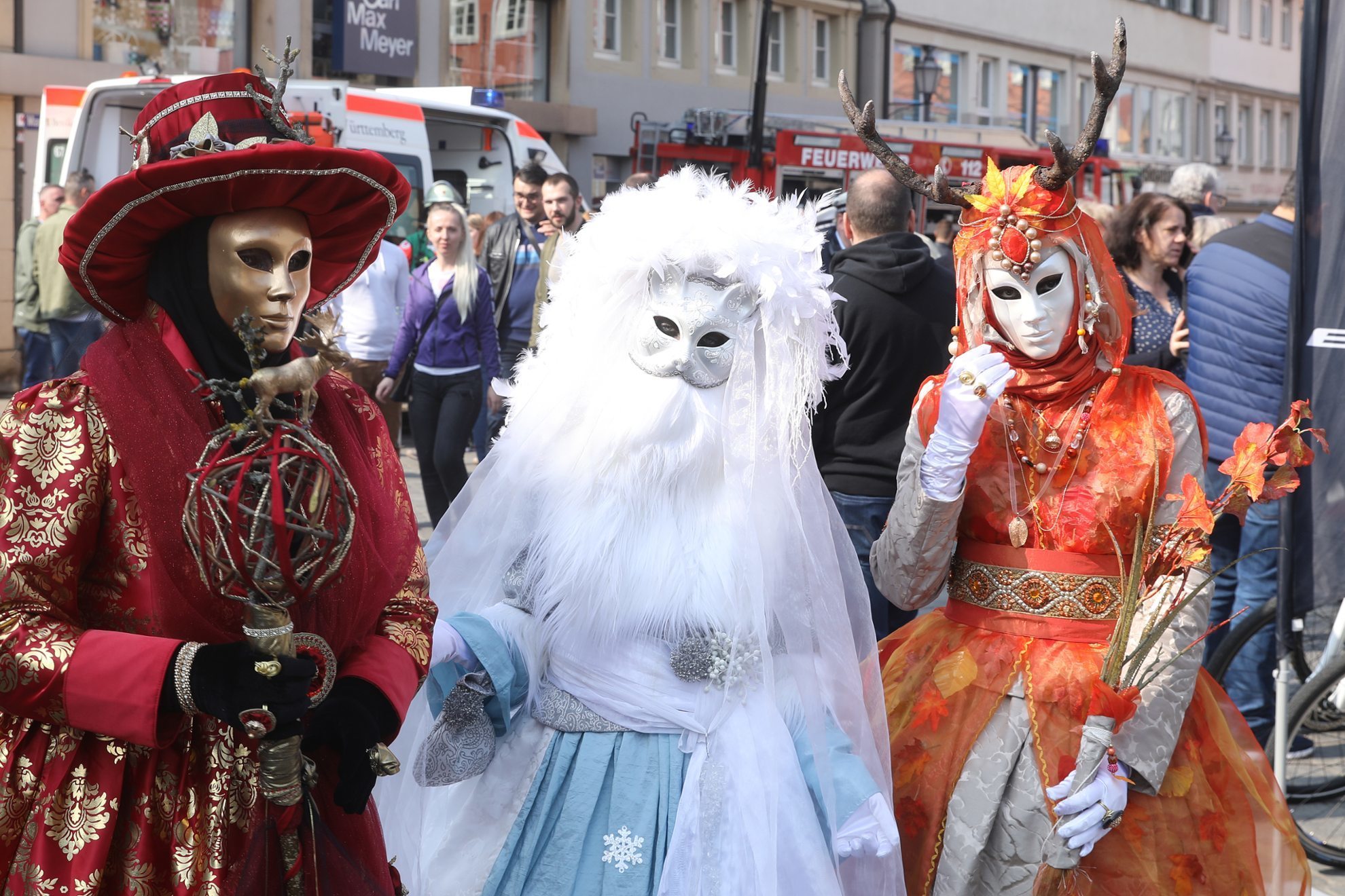 Viele Menschen drängelten sich beim von Schorndorf Centro veranstalteten "Frühlingserwachen", das seinen Namen diesmal auch wegen der frühlingshaften Temperaturen verdiente, durch die Innenstadt und in die verkaufsoffenen Geschäfte. Bei den Aktionen auf dem Marktplatz drehte sich fast alles "rund ums Rad". Als besondere Anziehungspunkte erwiesen sich der Sizilianische Markt und die Aktion "Maskenfrühling" mit mehr als 60 Trägerinnen und Trägern von venezianischen Karnevalsmasken, die aus ganz Deutschland und auch aus dem benachbarten Ausland nach Schorndorf gekommen waren.