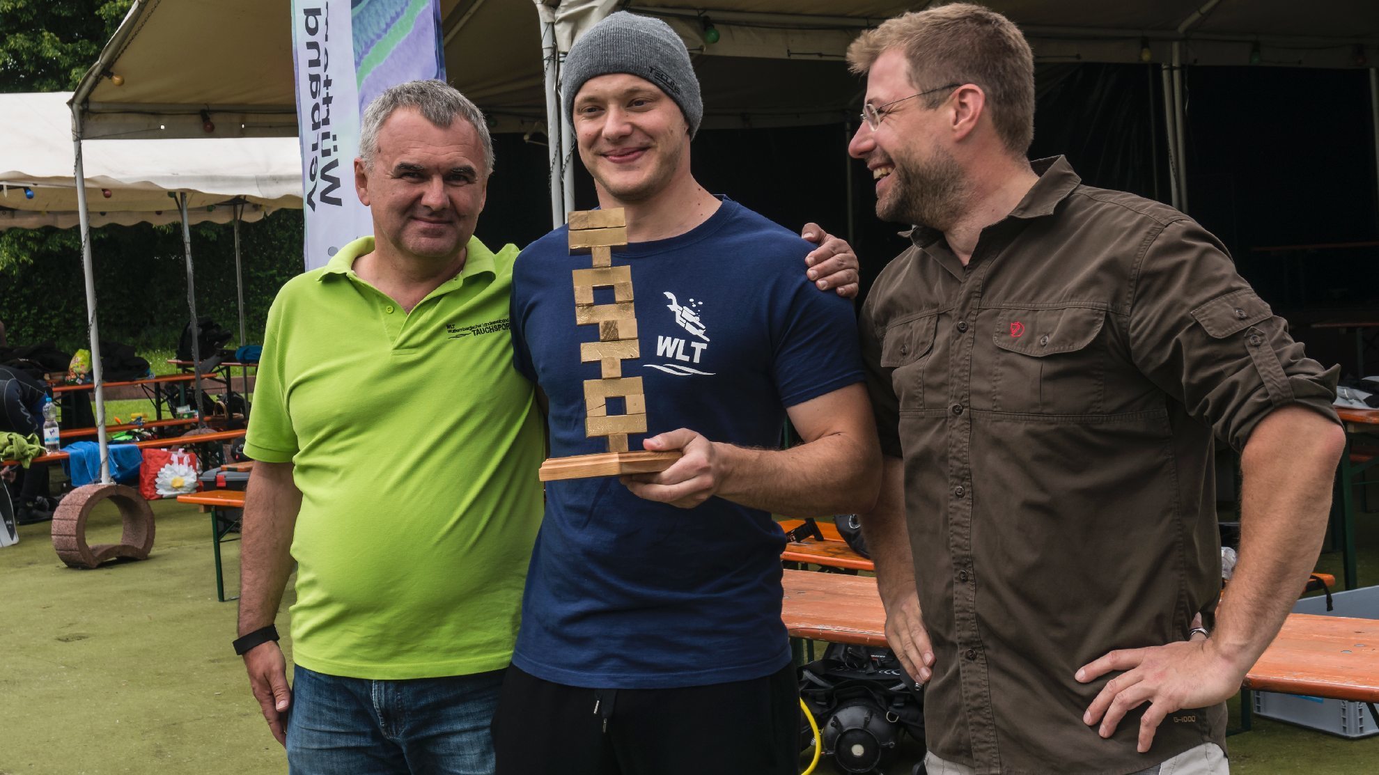 Im letzten Sommer ist das dem 30-Jährigen so gut gelungen, dass er alle anderen Mitspieler bei den German Open im badischen Deglersee hinter sich ließ. Seit zwei Jahren gibt es diesen Wettbewerb. Und der Spaß steht dabei im Mittelpunkt. Man sei drei Tage zusammen, zelte, tausche sich aus und habe eine gute Zeit. Der Konkurrenzgedanke, er ist nicht sehr stark ausgeprägt bei den Jenga-Spielern. Gemeinschaftsgefühl, Naturerlebnis und die Begeisterung für Technik sei es, was die Geschicklichkeitstaucher schnell miteinander verbinde.