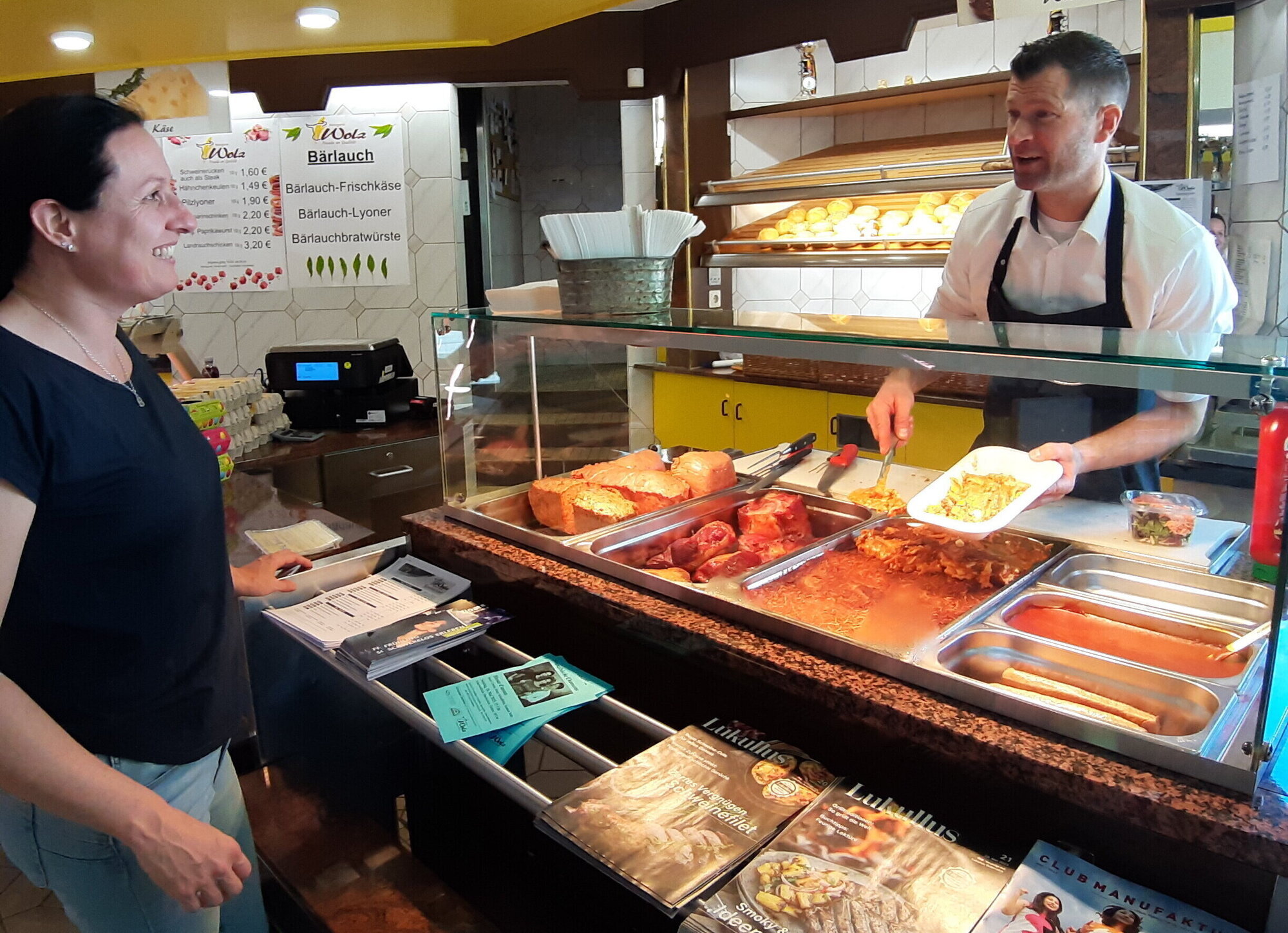 Schorndorf. Es geht um die Wurst. Aber nicht nur. Die WM-Spiele hat Christian Wolz eben mit einem älteren Herrn während des Einkaufs besprochen, kürzlich haben die Kunden seiner Frau ein Ständchen zum Geburtstag gesungen. Es geht freundlich, fast familiär zu in der Metzgereifiliale im Rehhaldenweg in Schorndorf. Nun, um die Mittagszeit, zieht es viele für das Tagesessen her. Auf der Karte steht Lasagne, die Mitgeschäftsführer Christian Wolz aus einer großen Metallschale