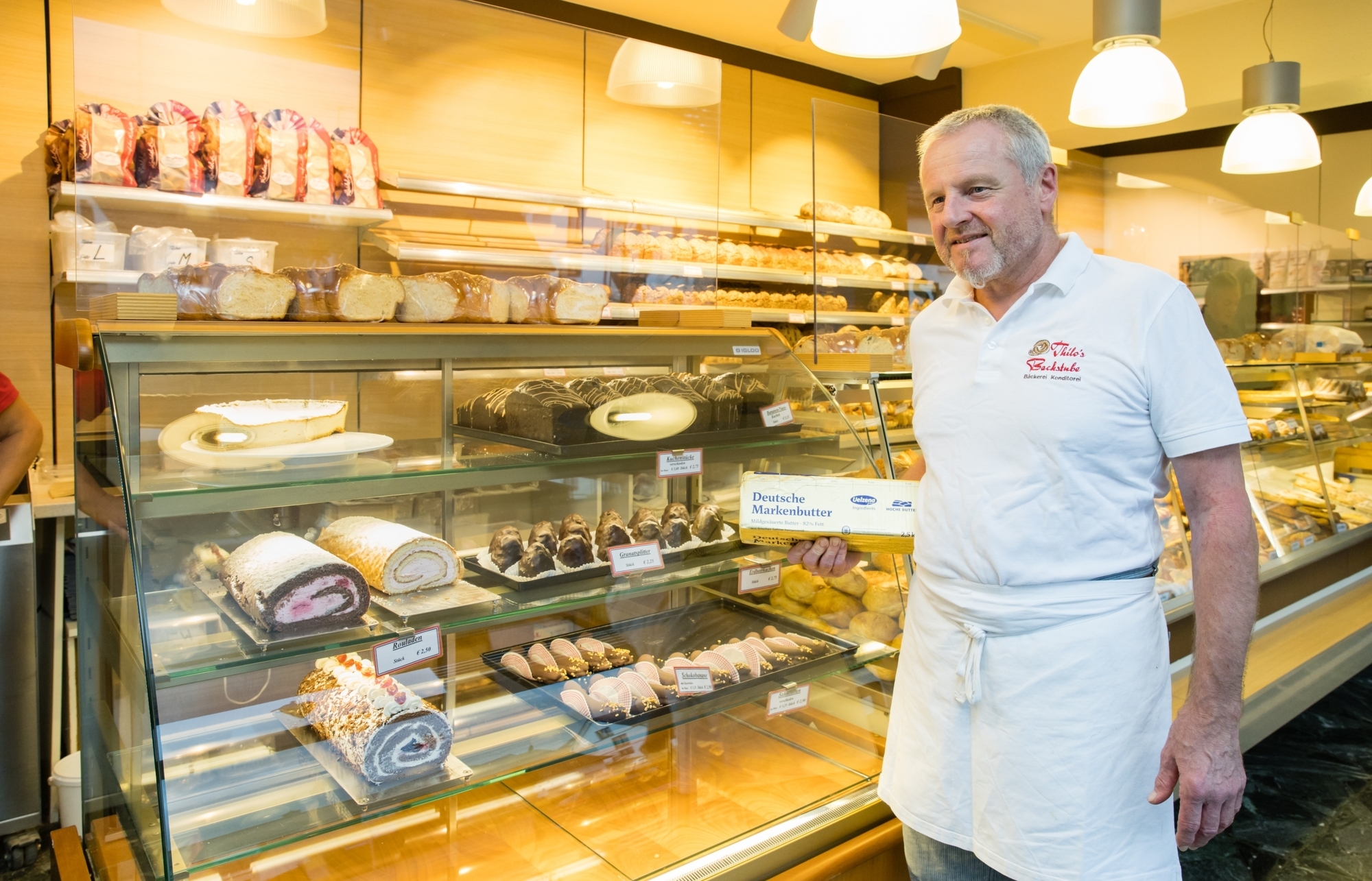 Noch ein Stück Butter in den Einkaufswagen, ein Blick zum Preisschild: Hoppla! Da werden derzeit mindestens 2,39 Euro fällig. Was Kundinnen und Kunden im Supermarkt den Einkauf verteuert, macht auch dem Bäckerhandwerk zu schaffen. Butter wird zum Beispiel in „Thilos Backstube“ in Haubersbronn vielfach gebraucht. Petra Lämmle, die Frau des Bäckermeisters, sie leitet den Verkaufsbereich, hat aufmerksam verfolgt, wie sich der Butterpreis entwickelt hat. Wöchentlich sei er gestiegen. In den