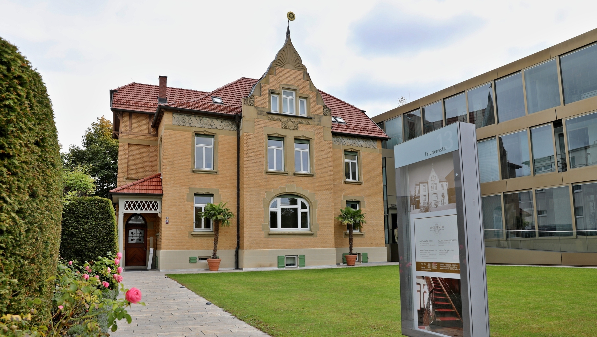Jugendstilvilla sucht Gewerbe-Mieter: Auf diese Immobilienanzeige haben sich bei Alicia Feig mittlerweile drei Interessenten gemeldet. In der ehemaligen Villa Veil in der Friedensstraße, gegenüber dem Burgschloss im Jahre 1902 erbaut und an der Sonnenblume am Giebel zu erkennen, sind auf 164 Quadratmetern Büro- und Praxisräume frei. Als die Flex Fonds Capital GmbH ihres Vaters den modernen Anbau genutzt hat, war im Erdgeschoss der Villa das Wellness- und Coachinginstitut „Soluna“ ihrer