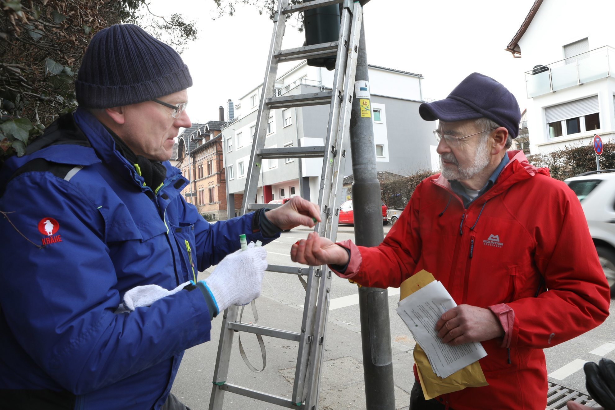 Gerade einmal 60 Euro haben Pesch und seine Mitstreiter von der Lokalen Agenda 21 und dem Verkehrsclub Deutschland (VCD) dafür investieren und die beiden Messröhrchen an einer Ampel fixieren müssen. Den Ort dafür haben sie sich gut ausgesucht. Die Ecke Schlichtener Straße / Burgstraße ist nicht nur viel befahren. In der Nähe sind auch Schule, Kita und Bushaltestelle. Orte also, an denen viele Menschen von möglichen Schadstoffbelastungen betroffen sind.