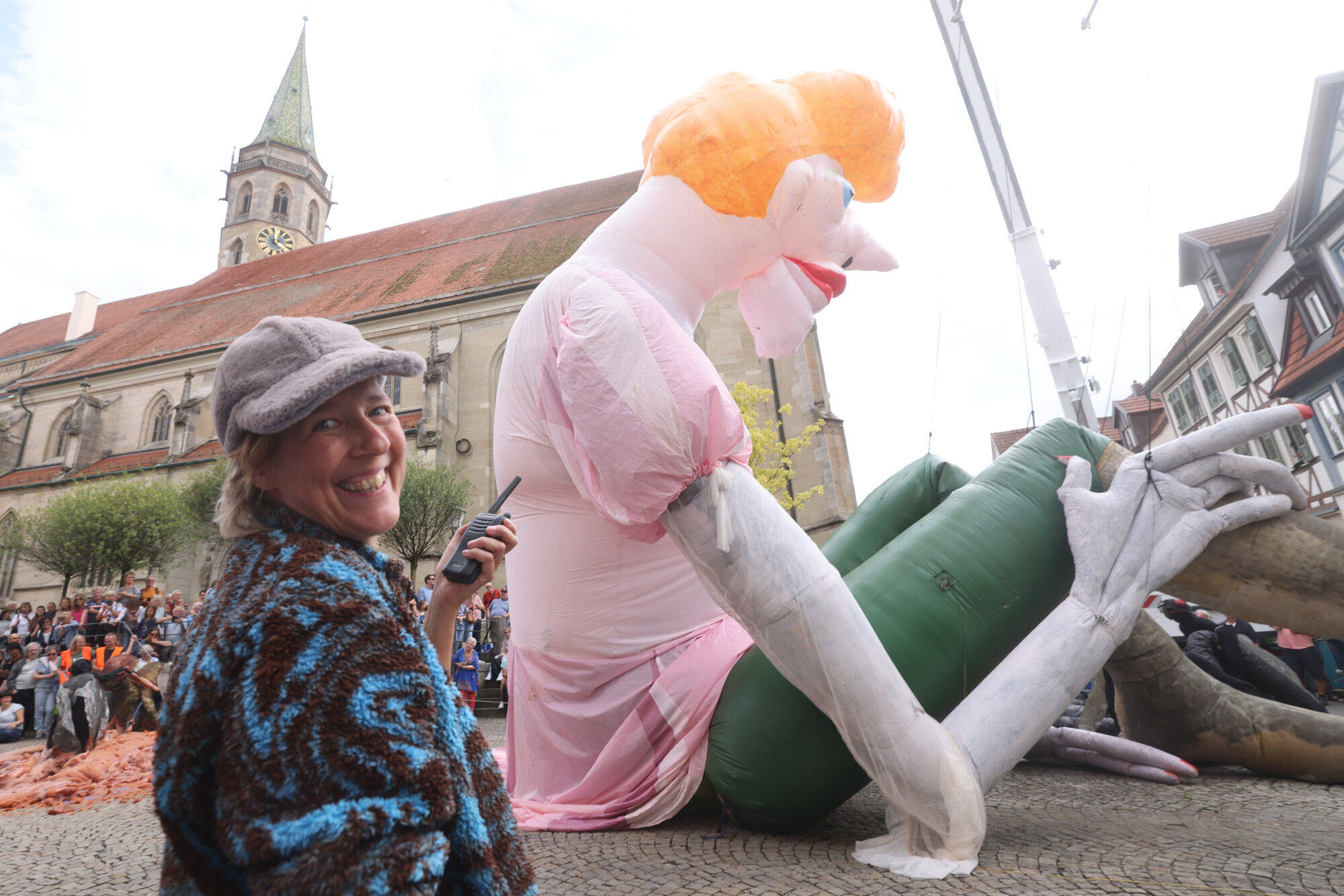 Hinter der riesigen Marionette steckte eine Künstlerin mit Schorndorfer Wurzeln. Stefanie Oberhoff, Jahrgang 1967, ist zwar in Cannstatt zur Welt gekommen, aber