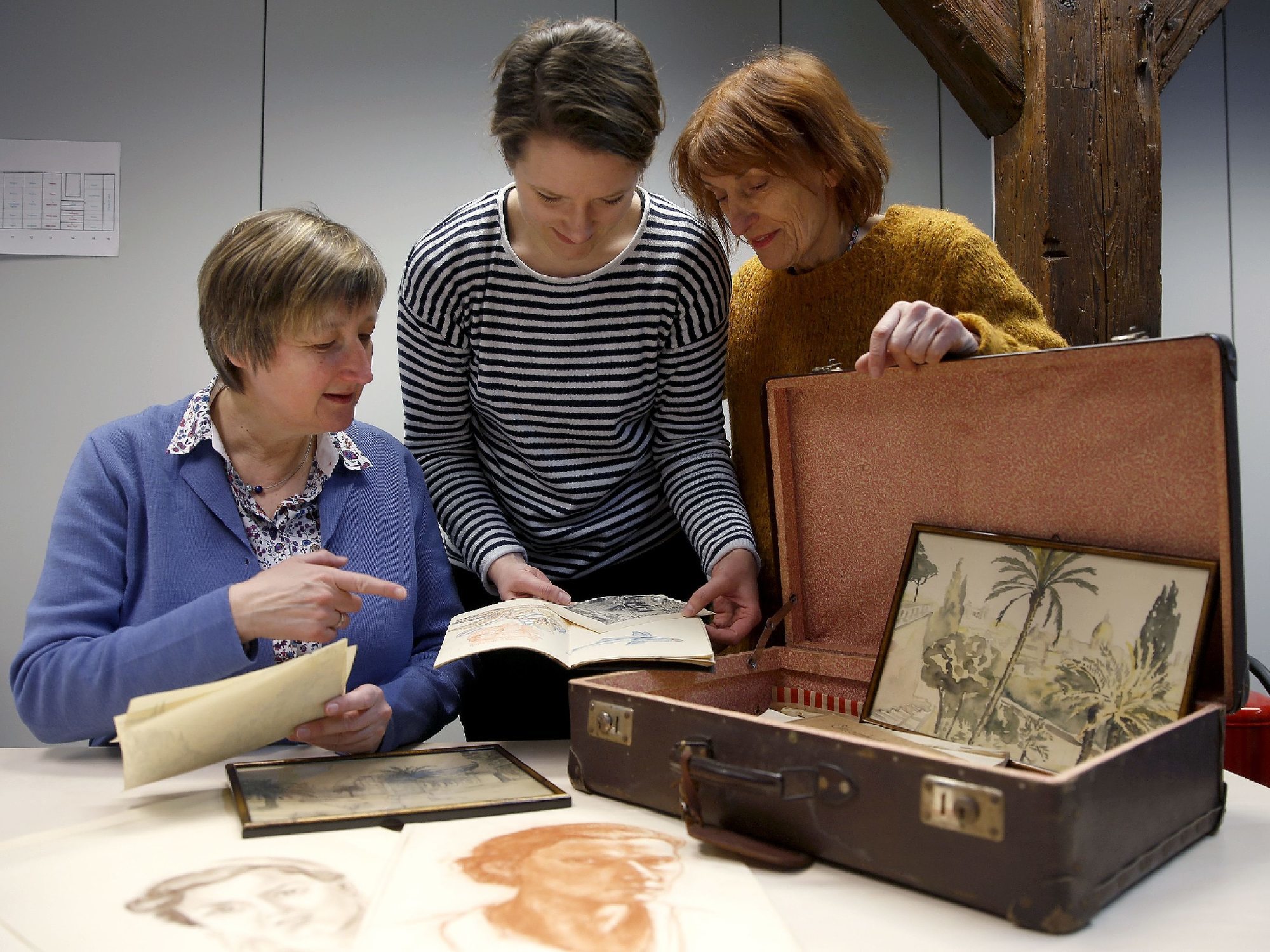 Schorndorf. Erst gab es nur eine Mappe mit Zeichnungen und Aquarellen. Dann folgte im Oktober auf eine kleine Ausstellung im Stuttgarter Gustav-Sigle-Haus die viel beachtete Sonderausstellung im Stadtmuseum. Und jetzt ist, kurz bevor die Ina-Krämer-Schau am Ostermontag zu Ende geht, ein alter Koffer aufgetaucht, den die Schorndorfer Künstlerin höchstwahrscheinlich selbst gepackt hat, mit frühen Bildern, Reiseskizzen und einem seltenen Selbstporträt.