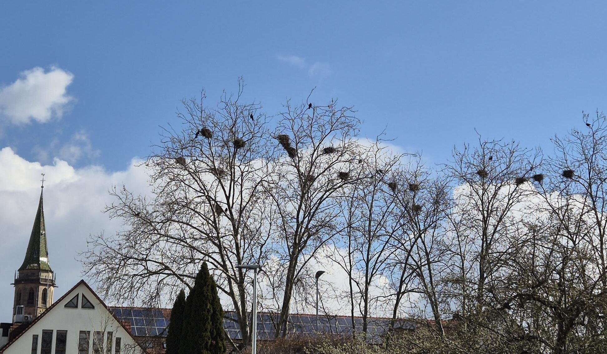 Schorndorf. Früh am Morgen liegt eine eigenartige Unruhe über der Ulrichstraße/Ecke Künkelinstraße in Schorndorf. Ein markantes „kräh, kräh“ durchbricht die Stille der noch schlafenden Stadt. Wer den Blick zu den Bäumen an der Seite des Künkelin-Parkhauses schweifen lässt, erkennt sofort die Urheber: eine Schar Krähen, die dort ihr Revier bezogen hat. Wenn der Himmel sich grau gestaltet und die Sonne noch nicht hervorblickt, dann erinnert dieser Anblick durchaus an Alfred