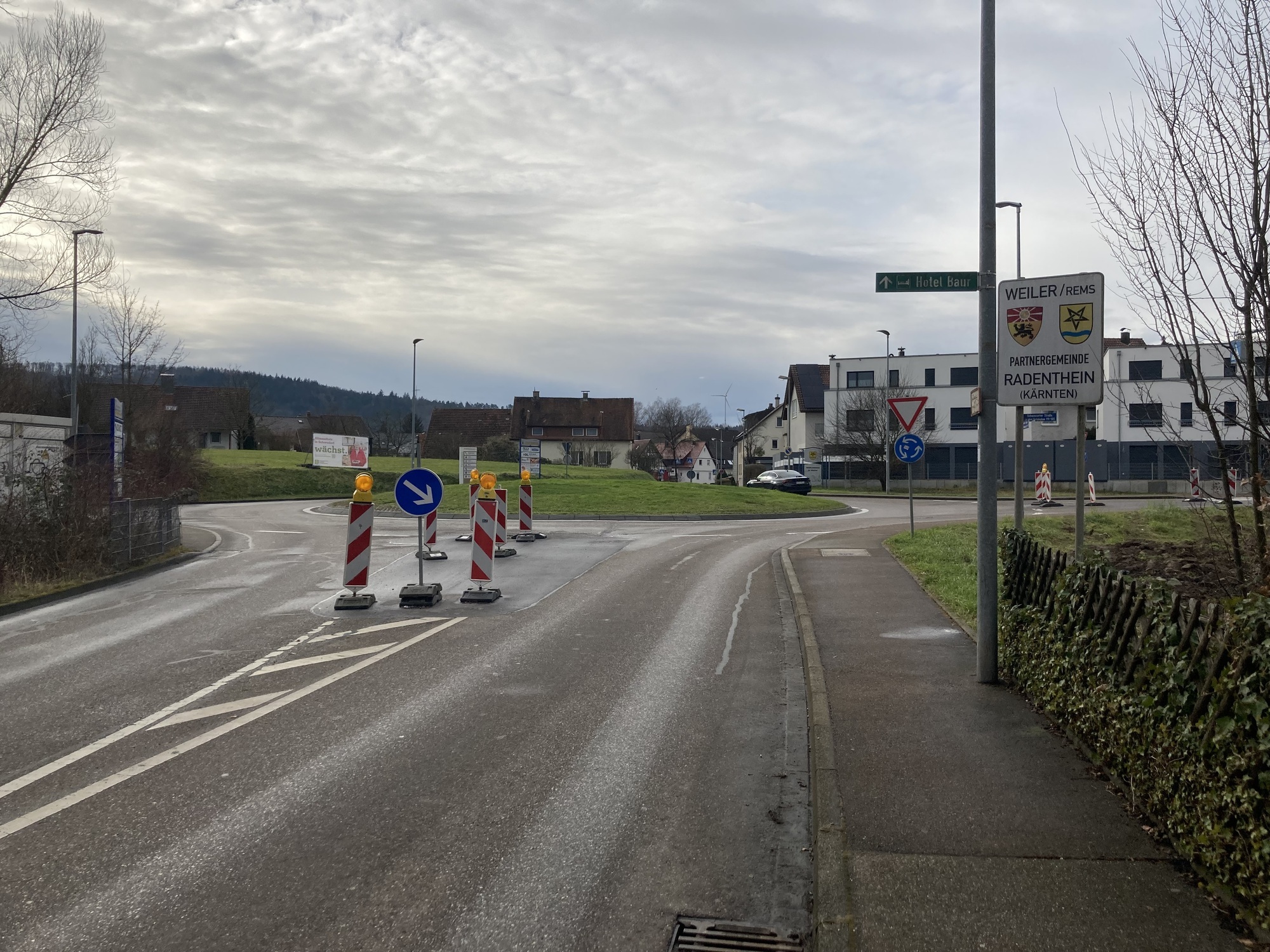 Die Wiese am Unteren Ziegelfeld in Schorndorf, die im Sommer als Umladeplatz für die Bauteile der beiden Windräder für den Windpark Kaisereiche diente, sieht noch etwas mitgenommen aus. Auch die zurückgebauten Verkehrsinseln am Weilermer Kreisverkehr sind noch immer nicht wieder hergestellt. Dabei ist der Transport der Komponenten für die beiden Windräder, die zuvor von Cuxhaven auf Autobahnen und Bundesstraße quer durch die Republik geschafft wurden, schon seit Anfang September