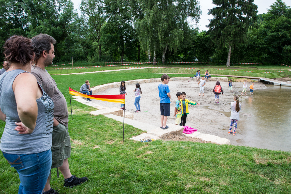 Streng genommen sei dieses Projekt aber gar nicht rein auf die Gartenschau zugeschnitten gewesen, sagte Schaffer. Vielmehr „war die Verbesserung des unattraktiven Kinderstrandes das Kernziel“. Am Aichstrutsee bei Welzheim habe man dann gesehen, wie man einen Kinderstrand „einfach natürlich gestalten kann“, und den dortigen Planer Uli Finke zurate gezogen. Er habe sich dann noch ein paar Gedanken mehr gemacht, wie der ganze Bereich attraktiver gestaltet werden könnte. Ergebnis „dieses partizipativen Planungsprozesses“, bei dem inzwischen Landschaftsarchitekt Gunter Jedamzik und die Arbeitsgemeinschaft Badesee mit im Boot waren, sei eine Planung gewesen, „deren Kosten allerdings weit über den veranschlagten Mitteln lagen“. Herausgekommen sei „wie so oft“ ein Kompromiss: „Man nahm einiges raus, ließ wichtige Punkte drin, plante in einem Bauabschnitt – natürlich unter Inkaufnahme einer etwas höheren Summe.“