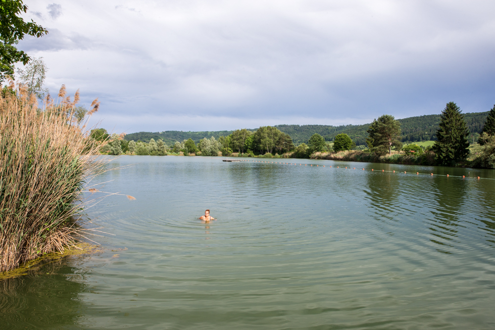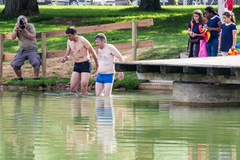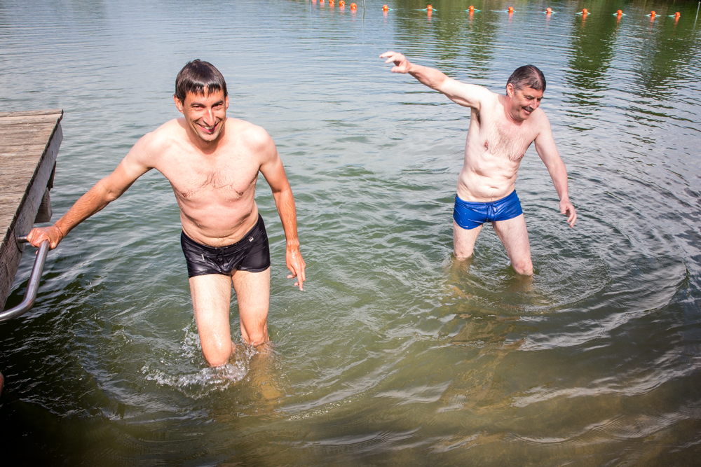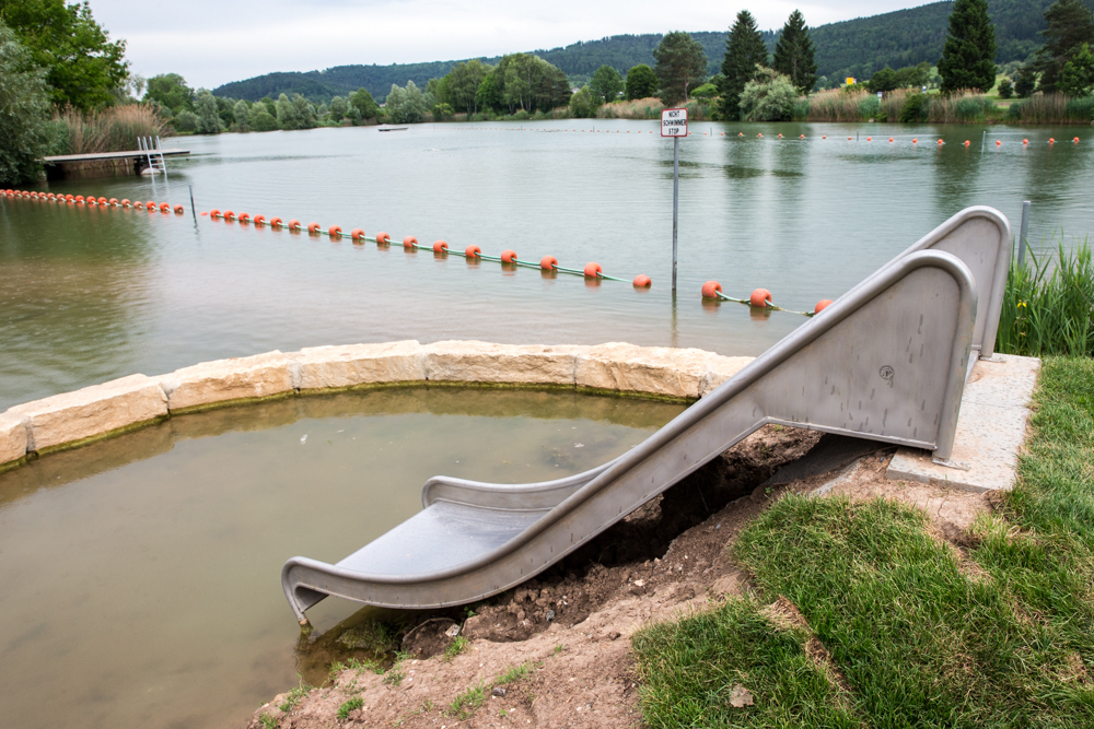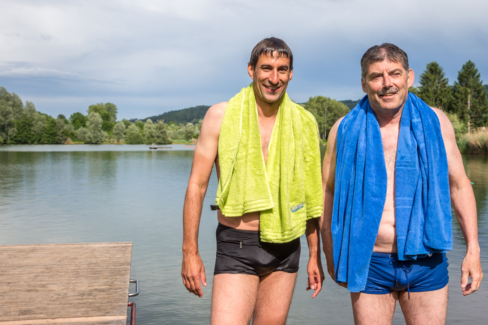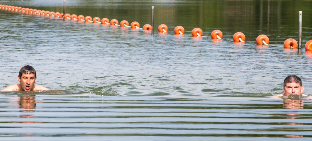 Am Freitag bei der Feier meinte es Petrus nicht besonders gut, was den Plüderhäuser Schultes zu der Aussage veranlasste, bei Regen im Badesee zu schwimmen, habe auch seine Qualität. Aber eine Einweihungsfeier bei Regen, das sei nicht so toll. Dennoch ließen es sich Andreas Schaffer und der Schorndorfer Oberbürgermeister Matthias Klopfer nicht nehmen, nach dem offiziellen Akt im Badesee zu schwimmen. Da regnete es aber auch nicht mehr.