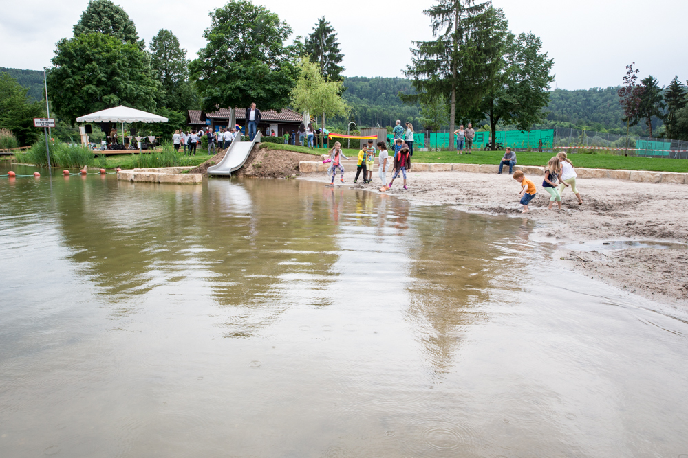 Leider sei die Gemeinde Plüderhausen bei der Ausschreibung „konjunkturbedingt über 20 Prozent über dem Kostendeckel gelandet“, was zur Folge gehabt habe, dass ein weiterer Kompromiss erforderlich geworden sei. Auch die Ausführung sei witterungsbedingt nicht so glatt gelaufen wie gewünscht. Im Frühjahr hätten die Arbeiten eigentlich abgeschlossen sein sollen. Jetzt sei man mitten in der Badesaison angekommen, und es habe schon viele Diskussionen mit Badegästen gegeben. Schaffer: „Wir sind froh, dass wir jetzt zum Beginn der Hochsaison einweihen können.“