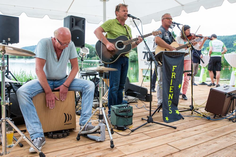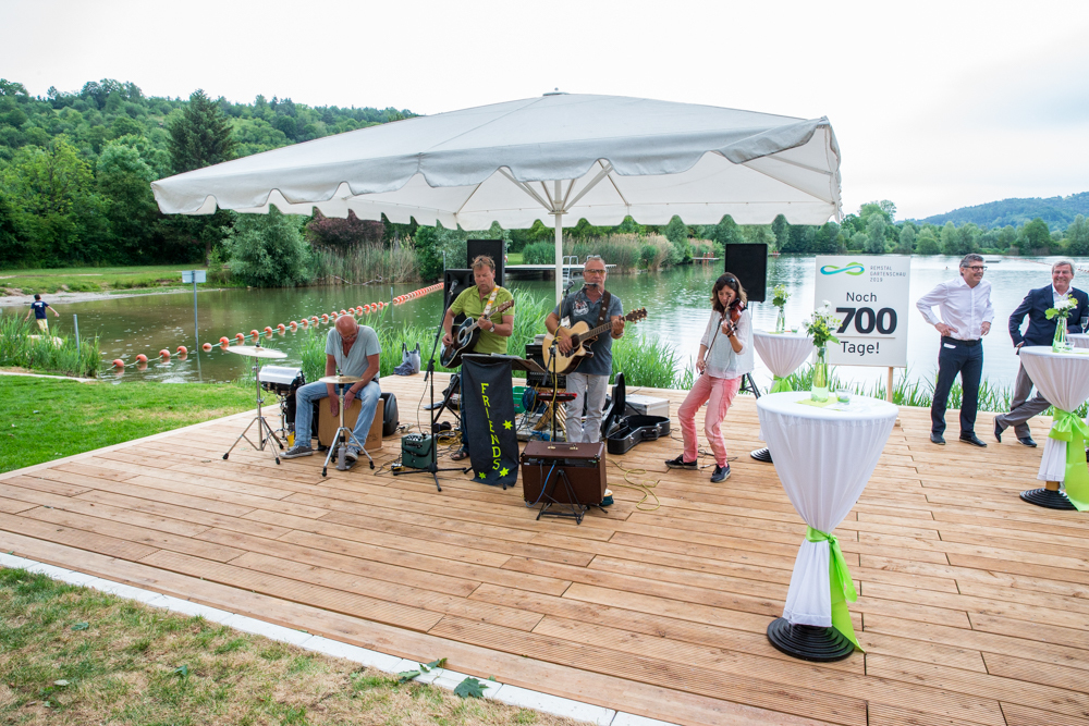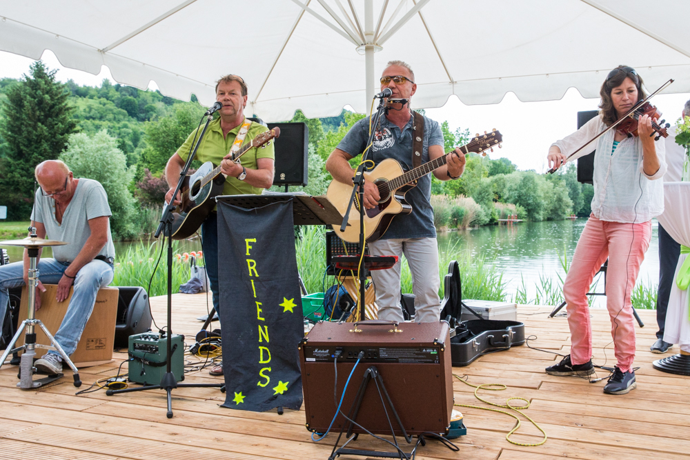 Dass die Gruppe „Friends“ die Einweihungsfeier musikalisch umrahmte, kam nicht von ungefähr. „Badeseeband“ nannte sie Bürgermeister Schaffer, und das nicht ohne Grund. Denn seit rund zehn Jahren spielen „Friends“ während der Badesaison einmal die Woche am See. Früher dienstags, inzwischen freitags. Natürlich nur, wenn es nicht Katzen hagelt, sprich regnet, was der Himmel hergibt.