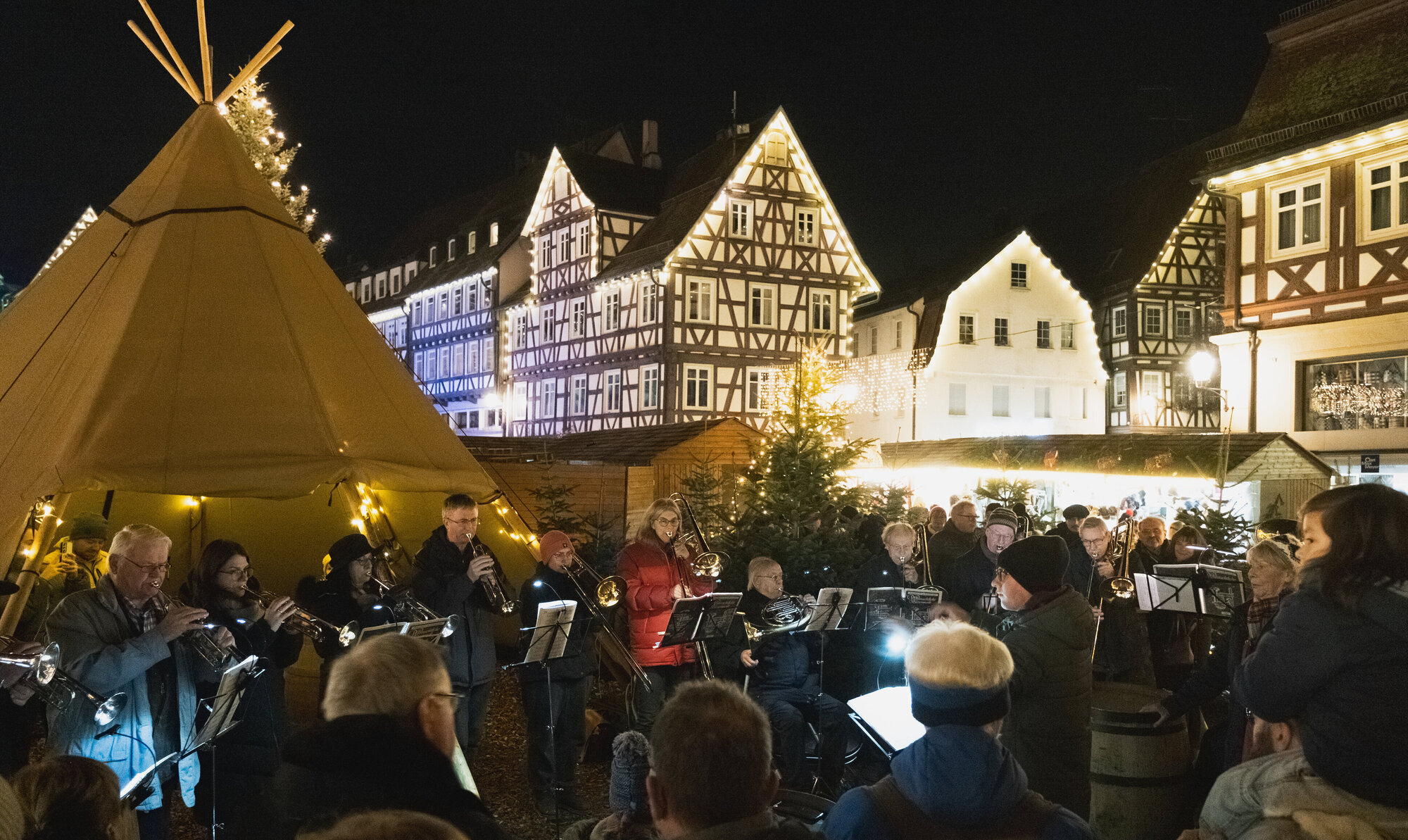 Schorndorf. Die ersten Kerzen sind angezündet, der Duft von Punsch, Grillwurst und gebrannten Mandeln liegt in der Luft. Der Marktplatz in Schorndorf mit seinem festlich beleuchteten Fachwerk, dem mit einem gehäkelten Winterschal geschmückten Rathaus und der aufgesetzten Zipfelmütze auf dem Brunnen bietet wieder die perfekte Kulisse für den Schorndorfer Weihnachtsmarkt. Stimmungsvoll wurde er am Samstagabend (29.11.) eröffnet.