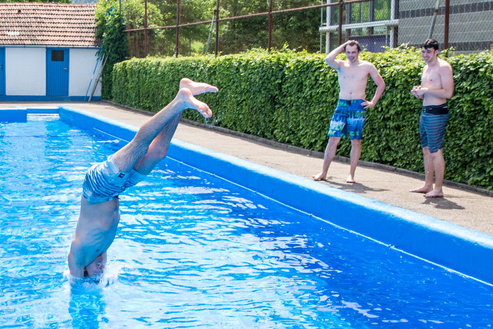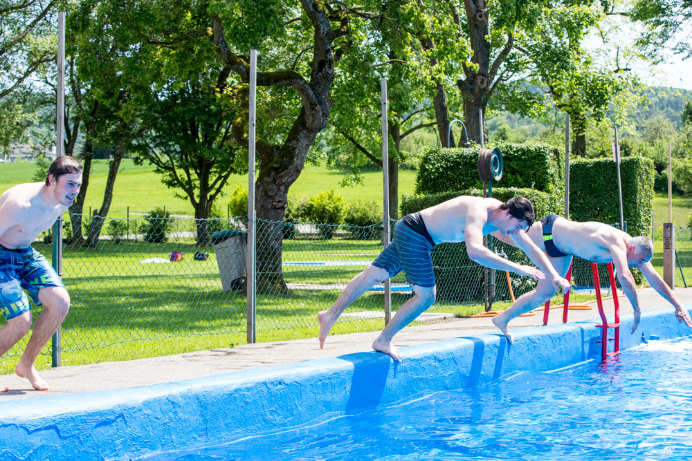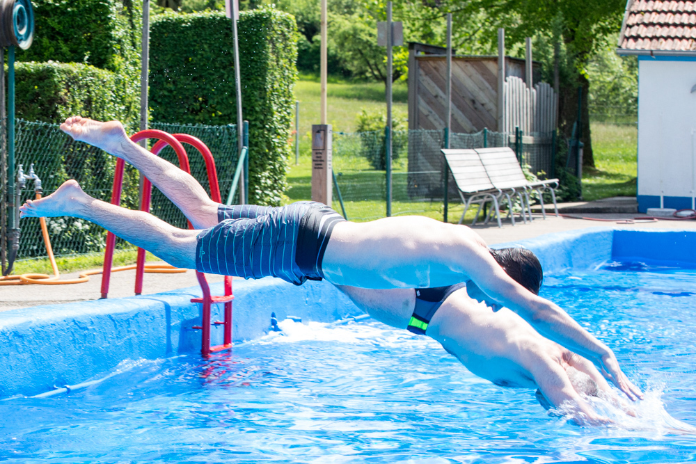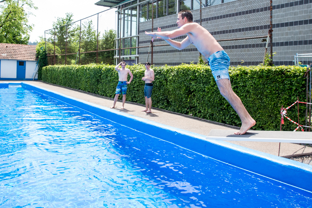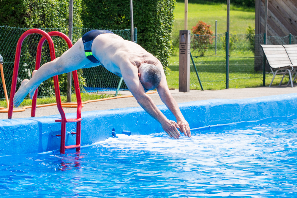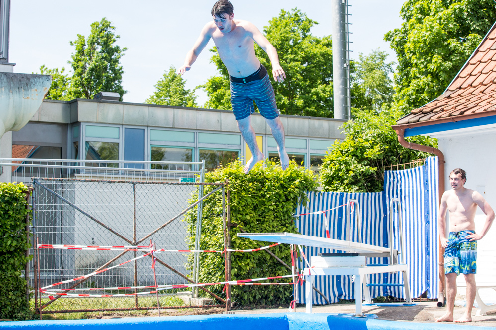 Kalt freilich war am Samstag auch das Wasser im Becken. Jürgen Erdmann hat 17 Grad gemessen, diese Temperatur aber nach seinem ersten Sprung ins Wasser in diesem Jahr gleich nach unten korrigiert: „15 Grad vielleicht.“ Den Humor verliert der Mann aber nicht: „Wir sind hier in Weiler schon bekannt für etwas kühleres Wasser.“ Gisela Mahr ergänzt: „Dafür ist bei uns auf der Liegewiese immer Platz.“ Fast immer, schränkt sie ein, denn an ganz heißheißen Tagen kann’s auch hier durchaus eng werden.