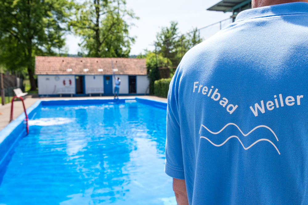 Weil aber diese Anlage fehlt, muss im Weilermer Bädle während der Saison je nach Wetterlage drei bis vier Mal das komplette Wasser im Becken ausgetauscht werden. Das sind jeweils 400 Kubikmeter. Nachhaltig ist das nicht, außerdem ist der Austausch ein Riesenact: Das Wasser wird nach und nach abgelassen. Gegen 16 Uhr ist das Becken dann fast leer. Nach Badeschluss werden Boden und Wände mit dem Hochdruckreiniger bearbeitet. Gegen 21.30 Uhr sollten die Schaffer damit fertig sein. Dann wird neues Wasser eingelassen, und am Tag darauf gegen 15 Uhr ist das Becken dann wieder voll.