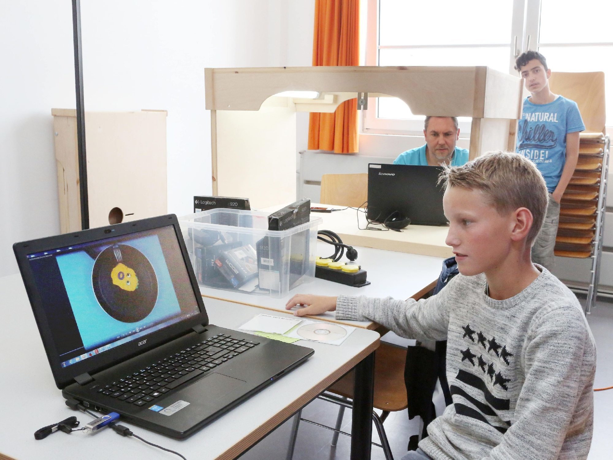 Mit der passenden Software, Zu3D, bearbeiten sie die Videos am Computer. Paul, der den Pfannkuchen verschwinden lässt, zeigt, welche Musik er ausgesucht und wie er unterschiedliche Tonspuren verwendet hat. Das habe locker noch einmal zwei Schulstunden gedauert, sagt er. Wohlgemerkt: Das eigentliche Video dauert 20 Sekunden. „Das macht mir Spaß“, sagt er. „Ich kann viel ausprobieren.“