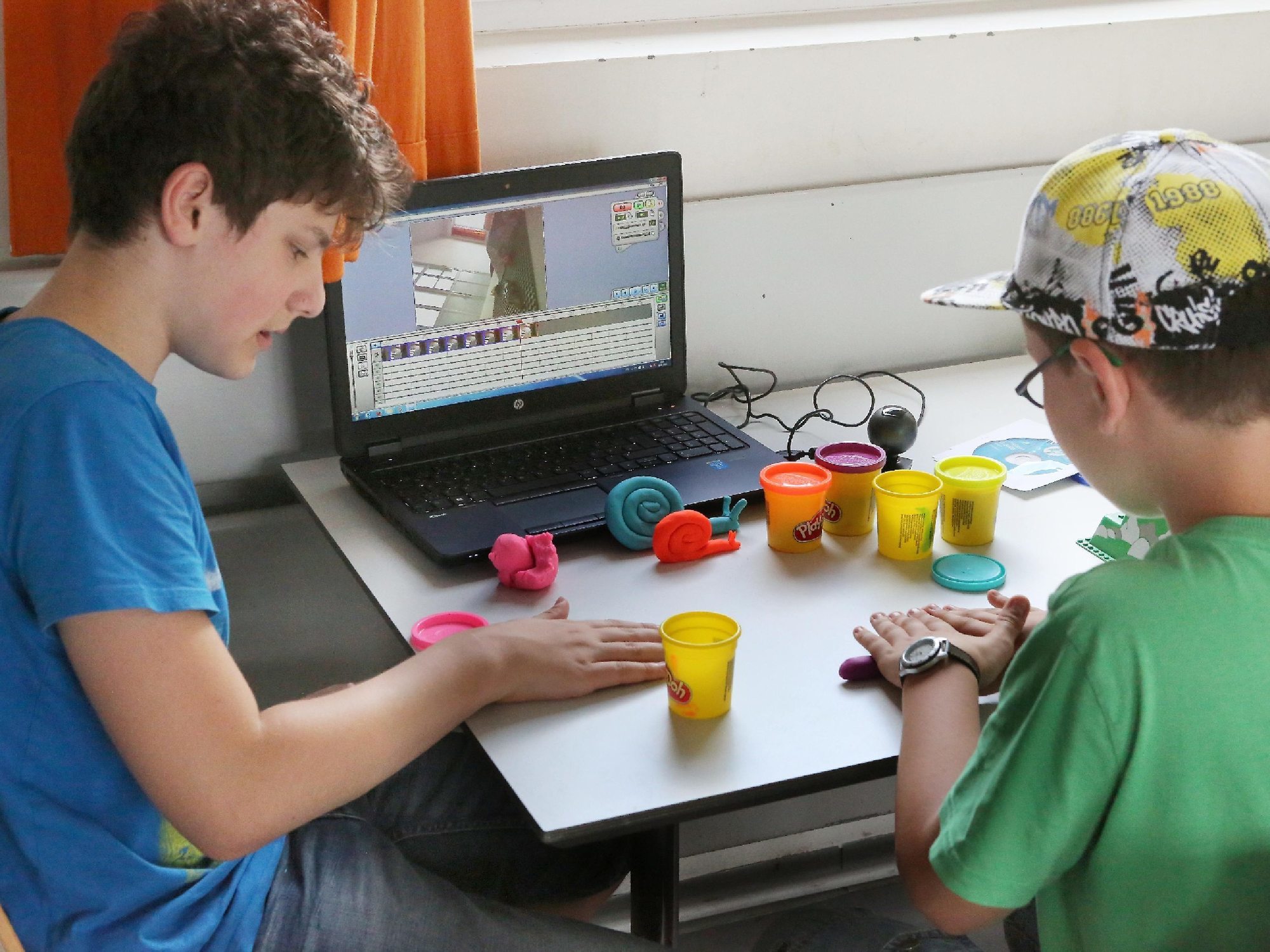 Berkant erklärt, was er und sein Mitschüler machen wollen. Sie kneten bunte Figuren. Wer sich im Videospiel-Bereich auskennt, erahnt, dass hier Figuren von Mario Kart entstehen. Sie wollen Rennszenen aufnehmen und dabei die Stop-Motion-Technik anwenden. Heißt: Sie stellen mit ihren Knetfiguren eine Szene dar und nehmen mit der Kamera ein oder mehrere Bilder auf. Dann verändern sie die Szenerie minimal, sprich, der Gesichtsausdruck kann verändert werden, die Autos sind ein Stück vorgefahren, die Figuren haben sich bewegt. Das ist unheimlich mühsam, schildert Kunstlehrer Gérard Boé.