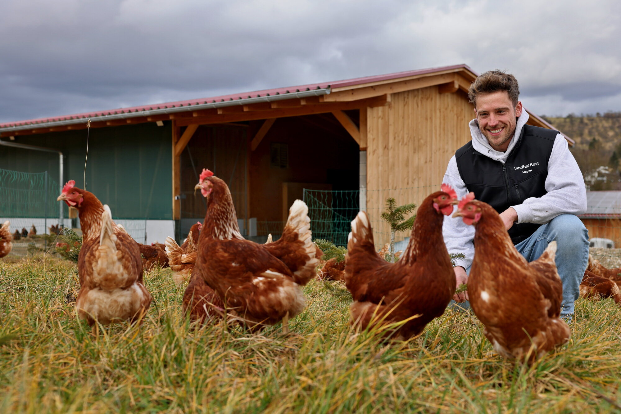 Schorndorf-Schornbach. Mitte Oktober sind die ersten der gefiederten Damen ins neue Domizil eingezogen. Auf dem Landhof Rost in Schornbach ist ein modernes neues Stallgebäude entstanden, das Platz für 500 Hühner bietet. In idyllischer Lage, mitten im Grünen. Einen Außenbereich gibt es ebenfalls für die Tiere, sie werden im Freiland gehalten. Ist der Landhof Rost, bisher vor allem und auch über Schornbach hinaus bekannt für seine Pferdehaltung, nun aufs Huhn