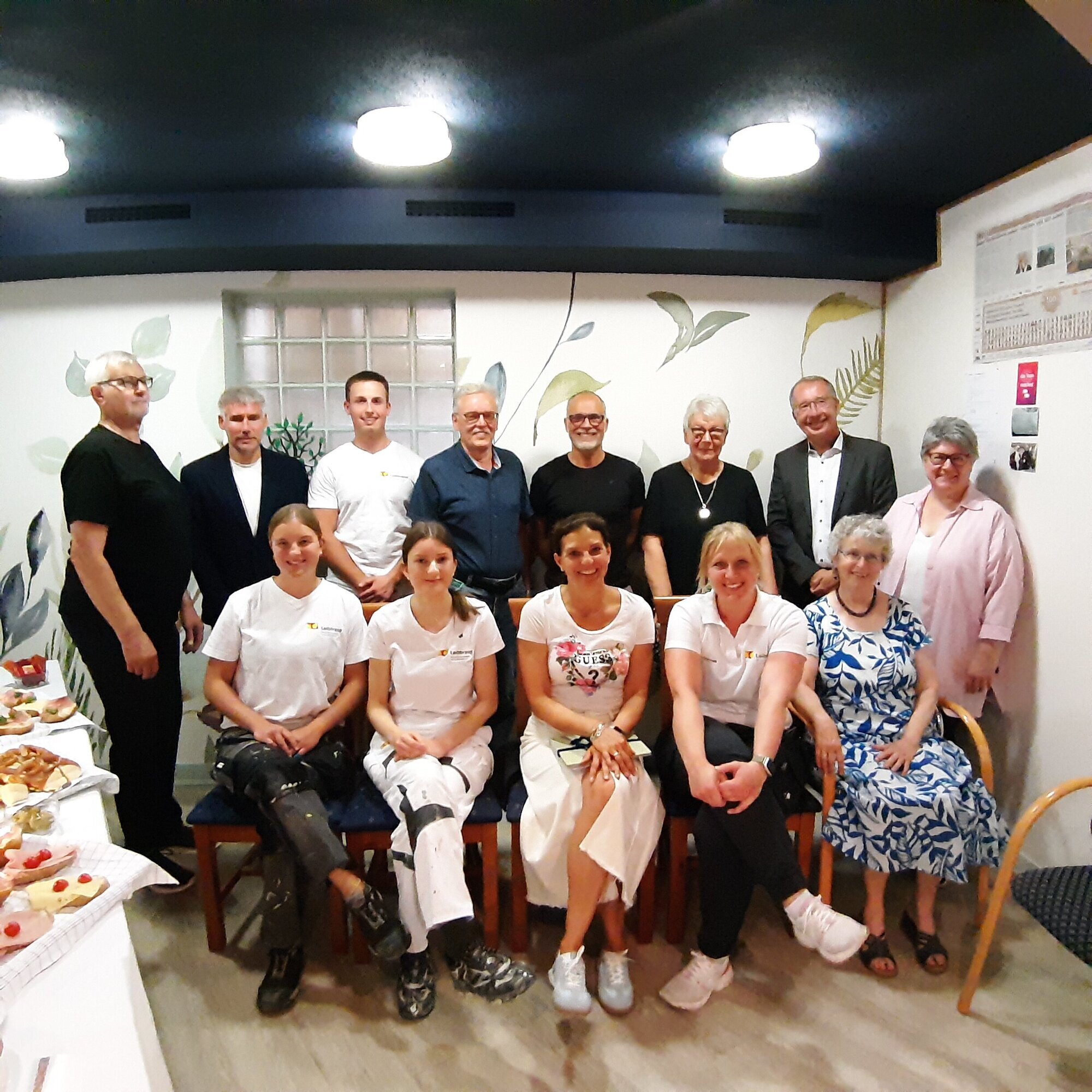 Schorndorf. Ein florales Motiv ziert deckenhoch eine Wand, der Fußboden hat Holzoptik und verbreitet eine warme Atmosphäre, das Farbkonzept des Raums wirkt harmonisch, frisch und ziemlich schick: Hier haben drei Auszubildende der Firma Leibbrand ganze Arbeit geleistet. Sie haben eine ehemalige Sauna im Untergeschoss des Stadthauses in der Gmünder Straße in einen Raum verwandelt, in dem die Bewohnerinnen und Bewohner gemeinsam basteln und spielen können. Pfiffig haben die