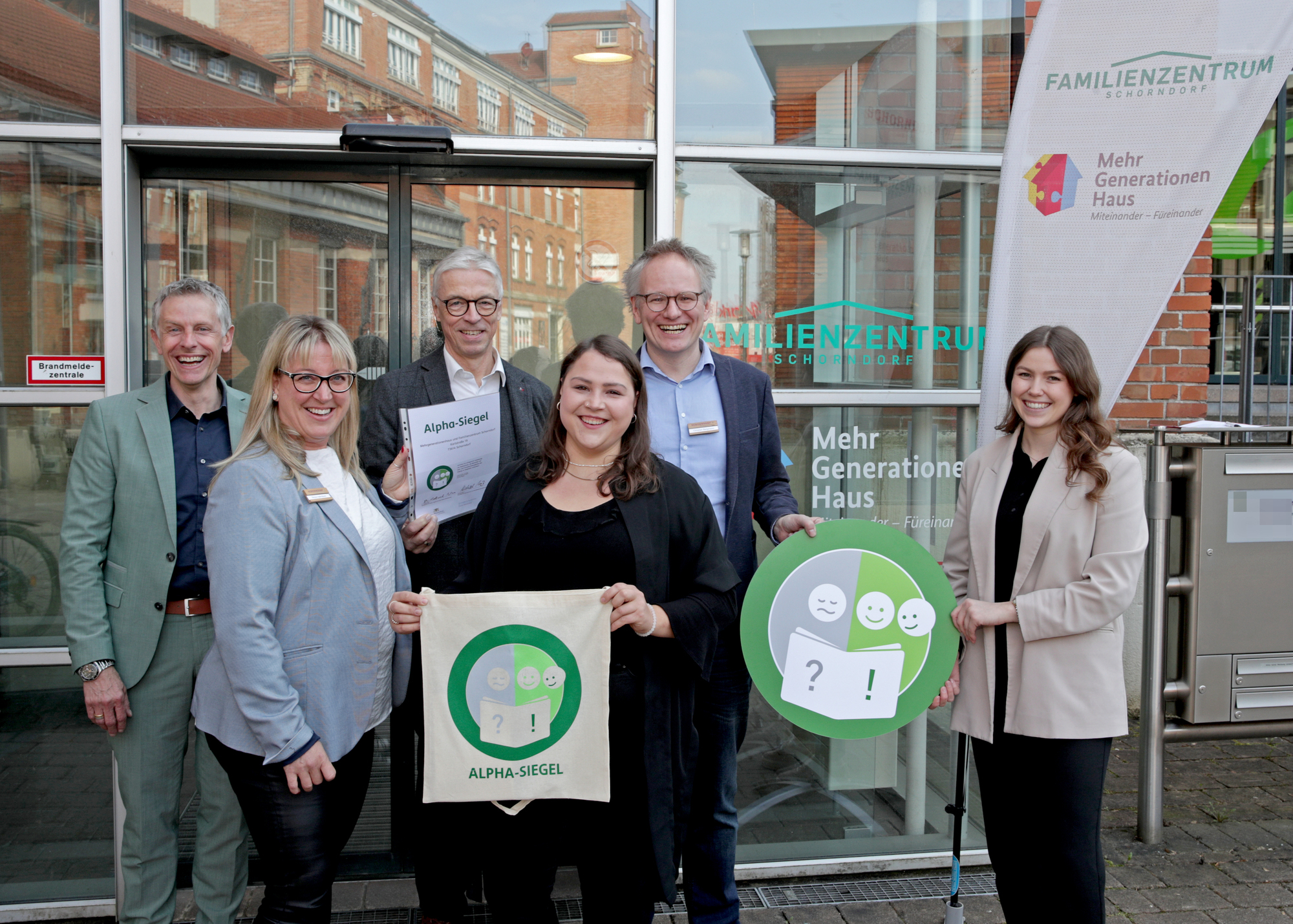 „Es ist eine tolle Sache. Das Alpha-Siegel steht uns gut zu Gesicht“, sagt Christian Bergmann (Fachbereichsleitung Familie und Soziales). Apropos Gesicht: Blickt man an diesem Nachmittag in die Gesichter der Anwesenden, ist die Freude nicht zu übersehen. Der 29. Februar 2024 – ein „denkwürdiger Tag“: Nicht nur, weil es den Tag nur alle vier Jahre gibt, sondern auch, weil das Mehrgenerationenhaus und Familienzentrum Schorndorf das erste Alpha-Siegel im Rems-Murr-Kreis erhalten