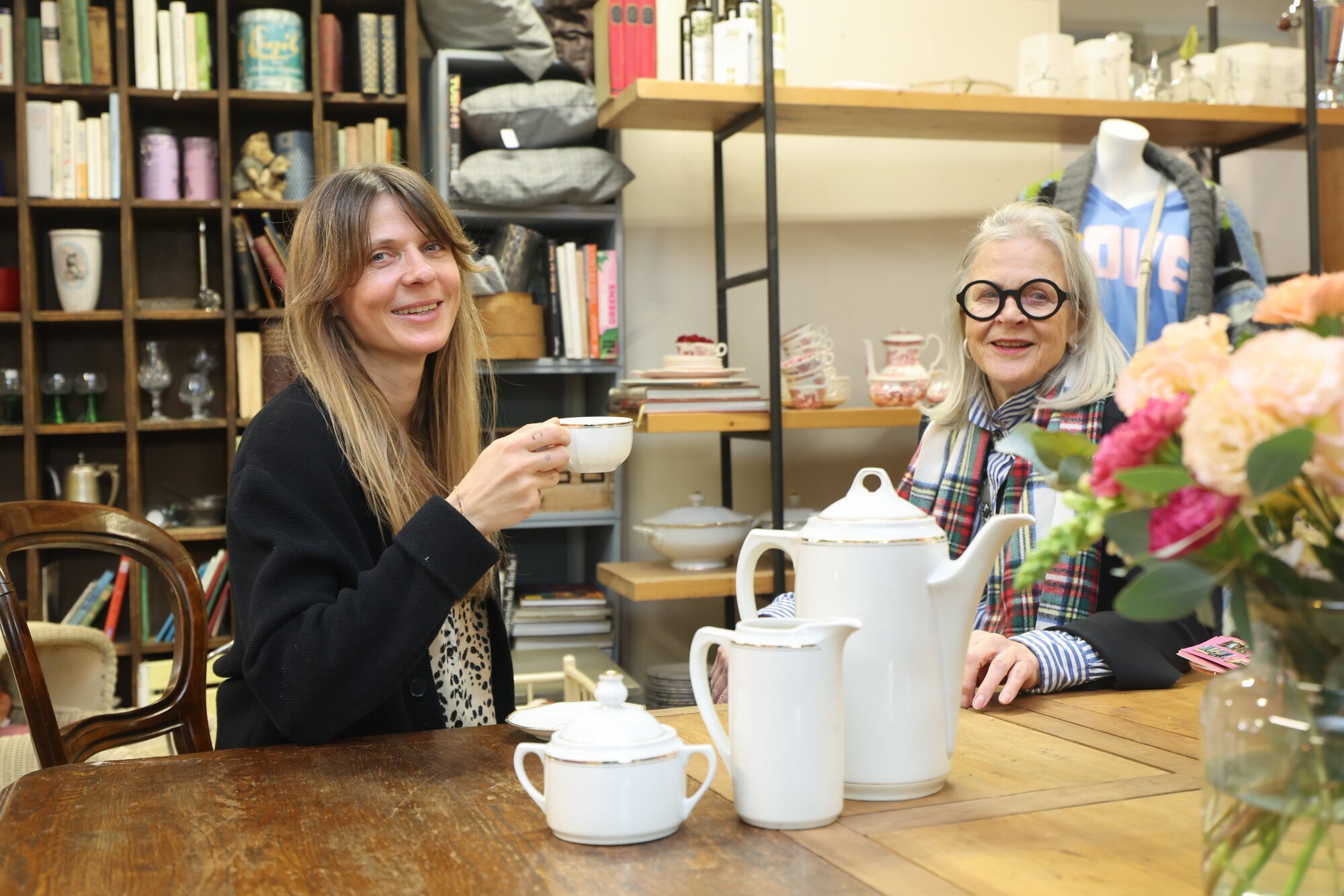 Schorndorf. Kleiderstangen voller Markenklamotten aus zweiter Hand, in und unter den Regalen bereits getragene, aber noch tragbare Schuhe, schicke Designer-Taschen und -Sonnenbrillen, dazwischen Flohmarktware, beige Plüschsessel aus dem Café de Ville, nostalgische Puppenwagen, Tassen und Kännchen aus Schorndorfer Porzellan, Schellack-Platten und goldgerahmte Bilder - bei Kleider & Schrank im Röhm-Areal in Schorndorf gibt es seit fast 20 Jahren das Besondere. Einmalig