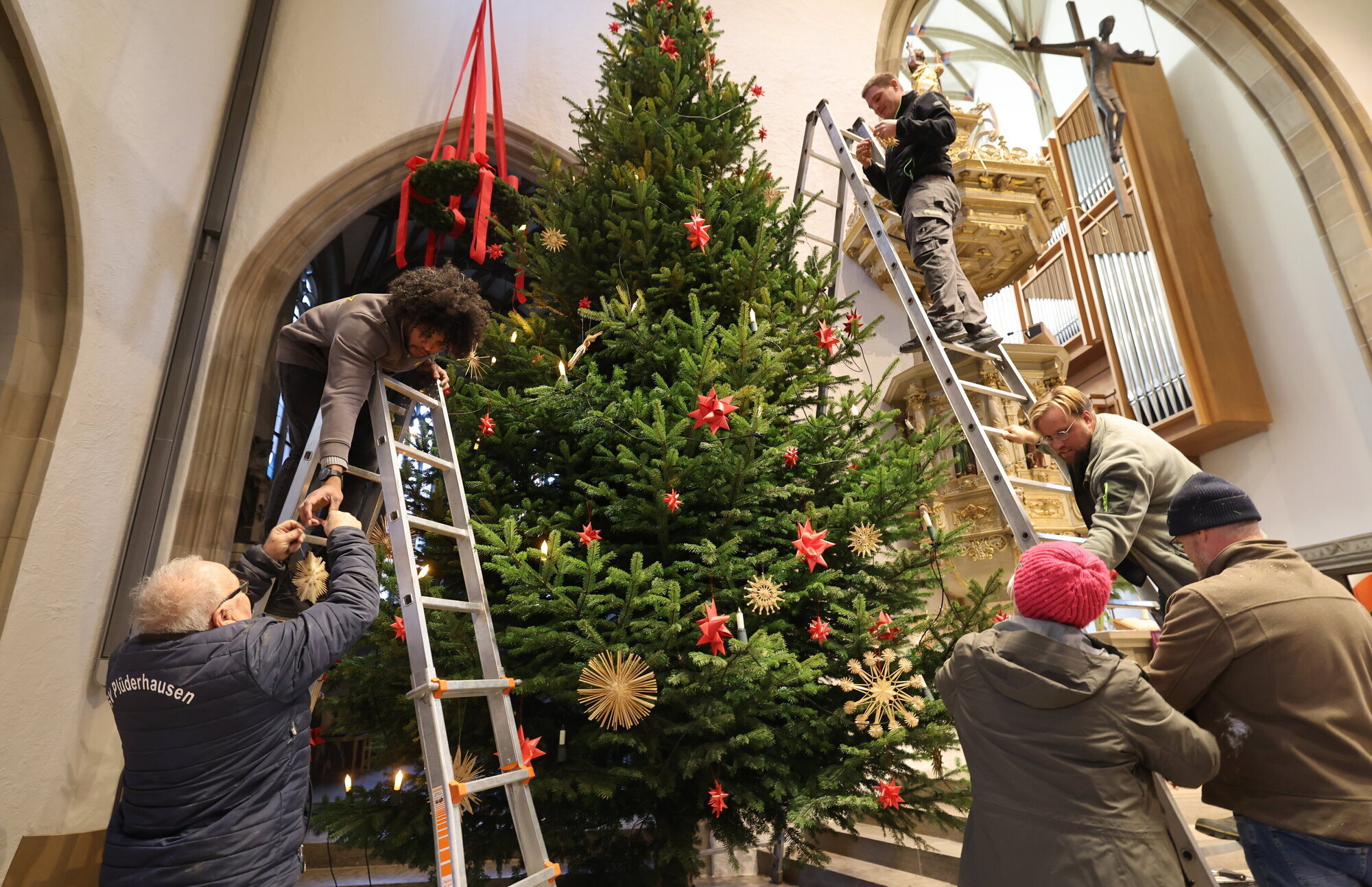 Schorndorf. Über sieben Meter hoch ist der Weihnachtsbaum in diesem Jahr, der in der Stadtkirche in Schorndorf festliche Stimmung verbreiten soll. Ein wahrer Kraftakt sei es gewesen, den Christbaum durch die Tore der Kirche zu hieven, erzählt Ralf Schlotz lachend.