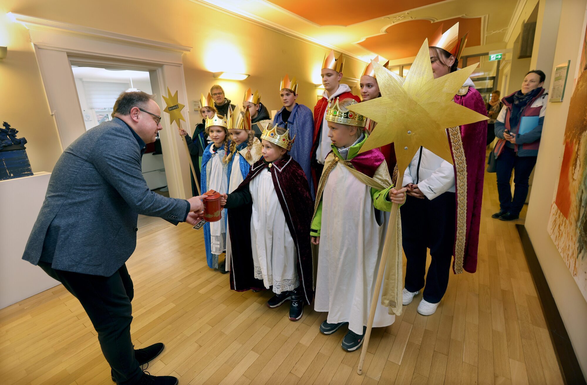 Nach den zwei vergangenen Pandemie-Jahren sind sie wieder wie „vor Corona“ unterwegs: die Heiligen Drei Könige, verkleidet als Caspar, Melchior und Balthasar. Die Sternsinger ziehen von Haus zu Haus und bringen den Menschen den Segen „Christus mansionem benedicat“ (Christus segne dieses Haus). Im vergangenen Jahr zogen sie zwar auch vereinzelt durch die Straßen, blieben aber ausschließlich vor den Türen stehen, gingen auf Abstand und hatten sogar einen Mund-Nasen-Schutz getragen.