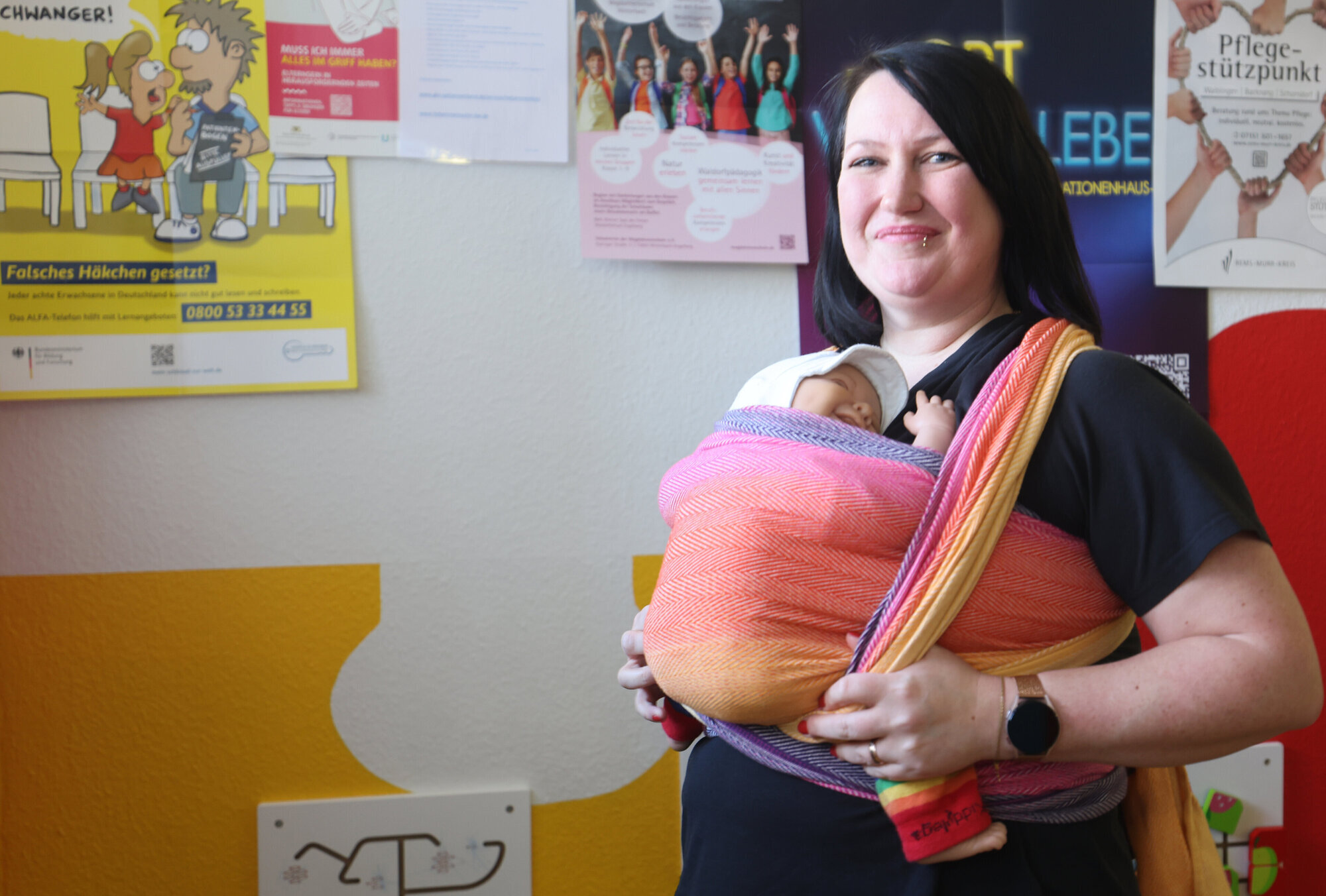 Schorndorf. Tamara Krüger (39) ist Trageberaterin – was das soll und was man da macht? Ganz einfach: Die Mama zweier Töchter, fünf und acht Jahre alt, weiß, wie Babys sicher und bequem getragen werden – im Tragetuch oder in der Tragehilfe. Sie kennt den optimalen Sitz fürs Baby und das richtige Einbinden und Verknoten des Tuches, sodass nicht nur das Baby gut gestützt ist, sondern auch Rücken und Schultern von Mama oder Papa spürbar entlastet werden. Warum Tragen so